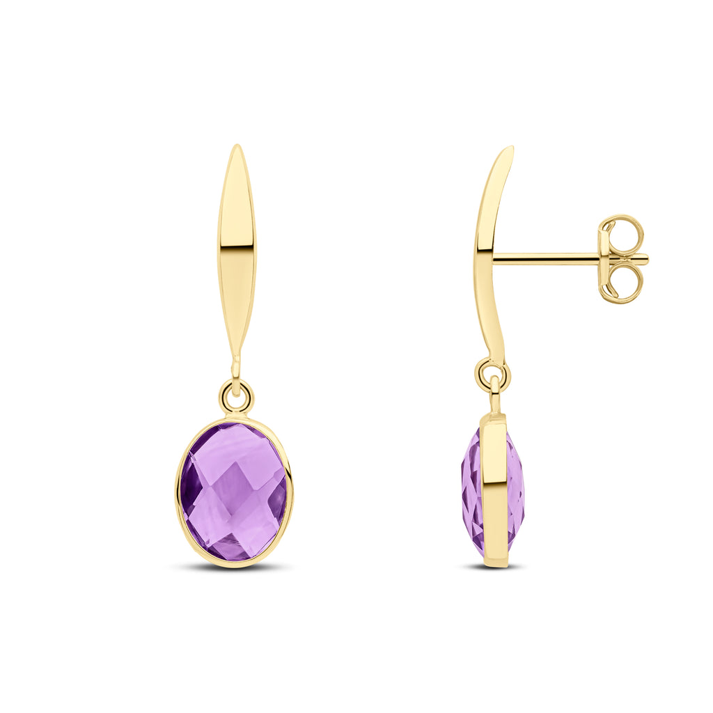 9CT Yellow Gold Oval Amethyst Rubover Drop Earrings 6x4mm