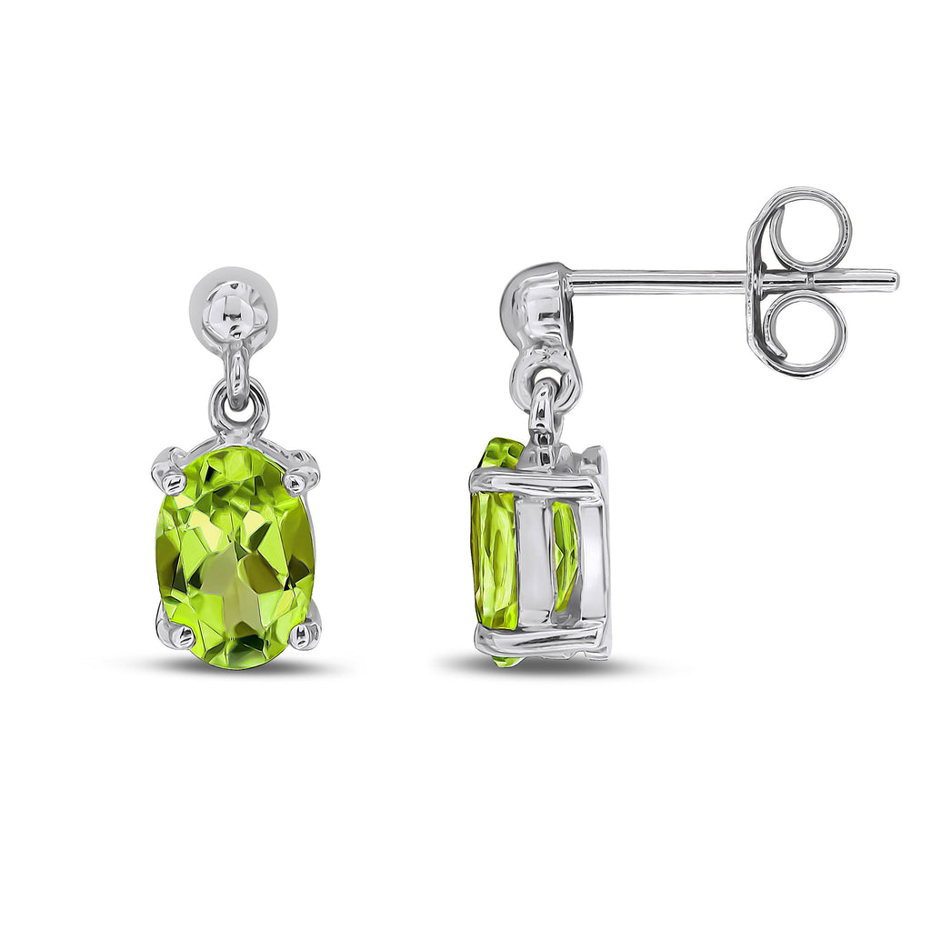 9CT White Gold Oval Peridot Drop Earrings 6x4mm