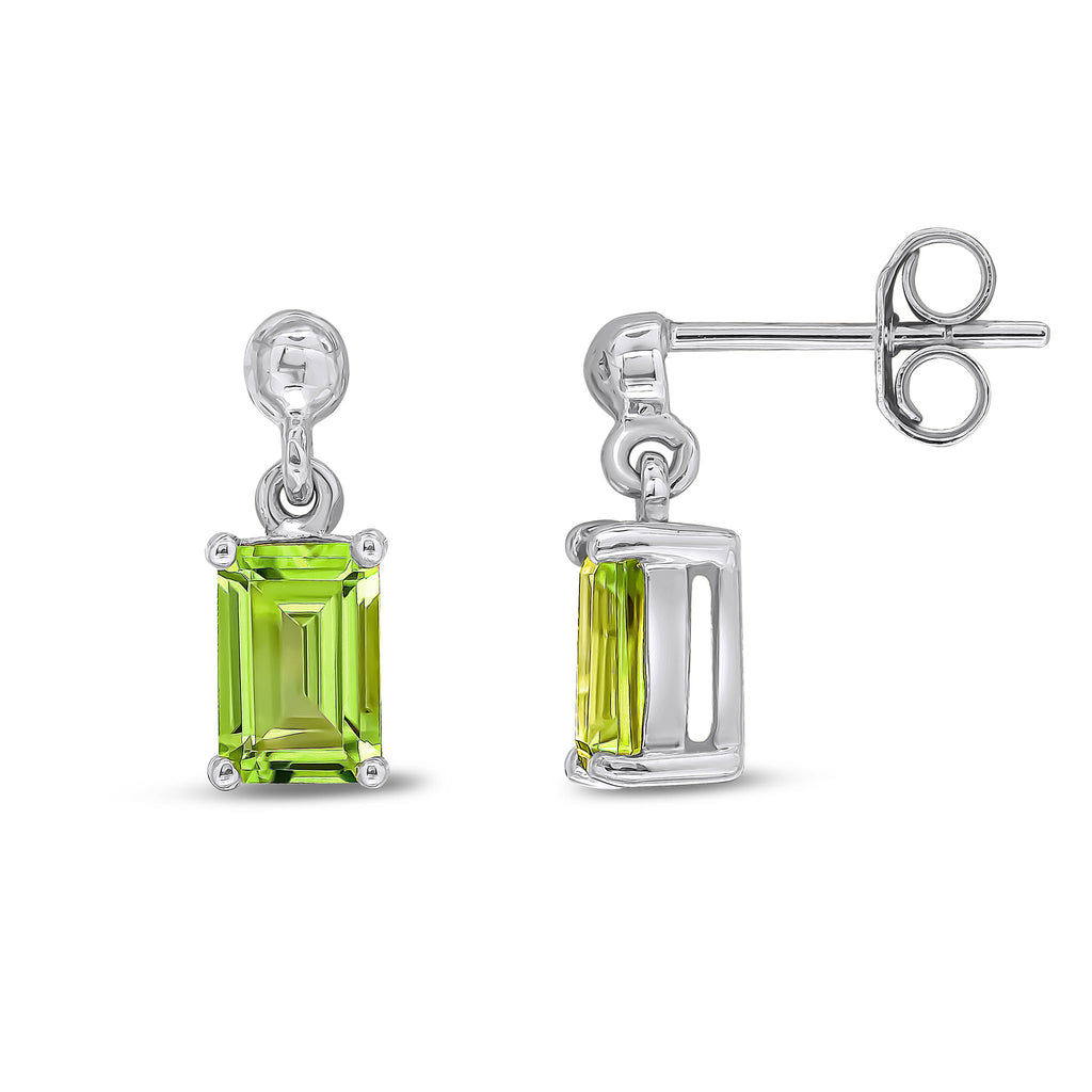 9CT White Gold Octagonal Peridot Claw Drop Earrings 6x4mm