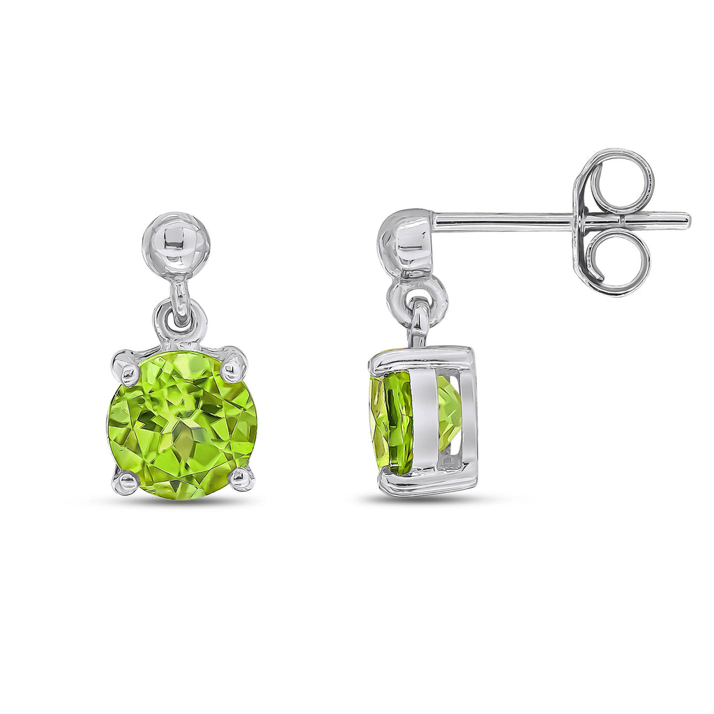 9CT White Gold Round Peridot Claw Drop Earrings 6mm
