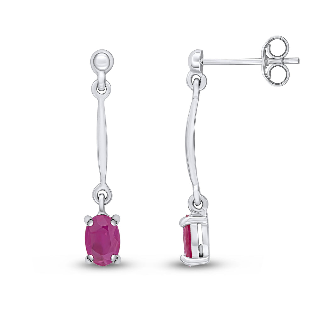 9CT White Gold Oval Ruby Claw Bar Drop Earrings 7x5mm