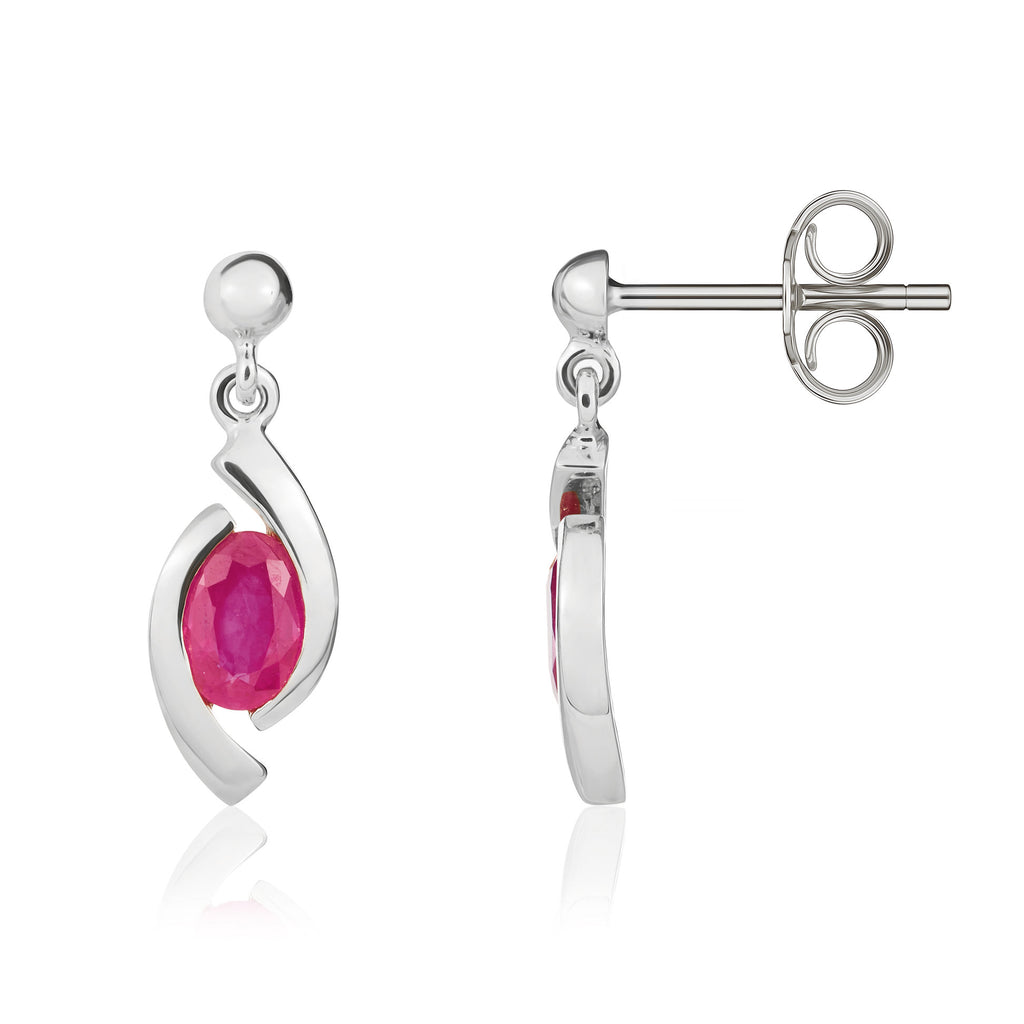 9CT White Gold Oval Ruby Drop Earrings 7x5mm