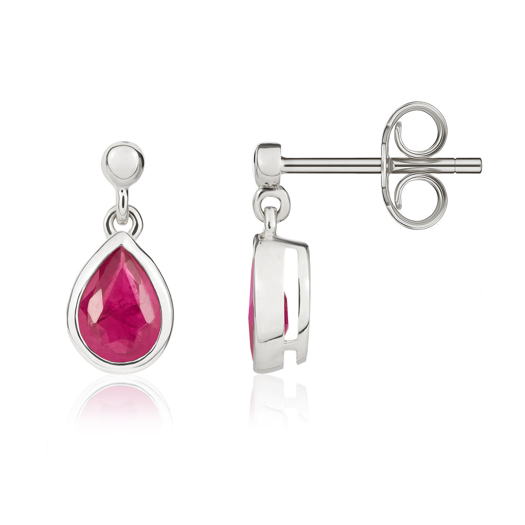 9CT White Gold Pear Shaped Ruby Double Stone Rubover Drop Earrings