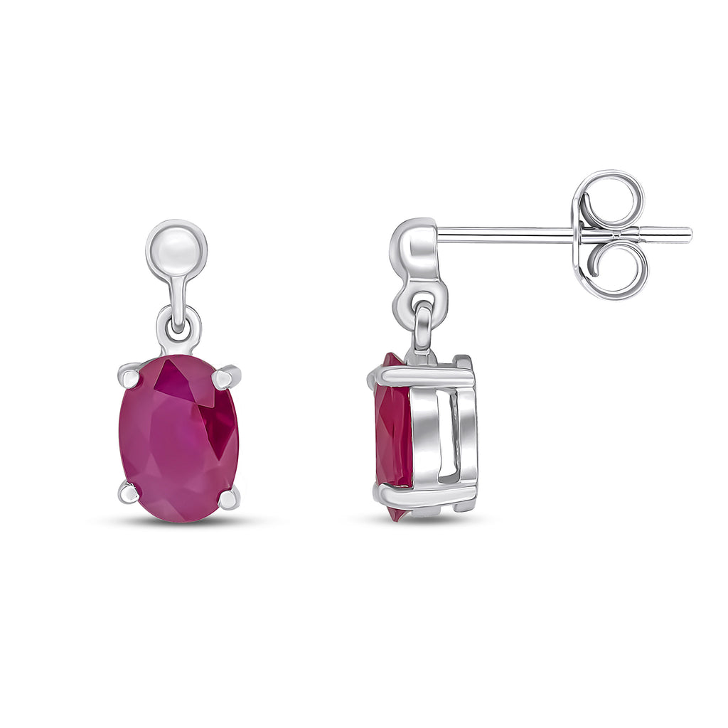9CT White Gold Oval Shaped Ruby Drop Earrings 7x5mm