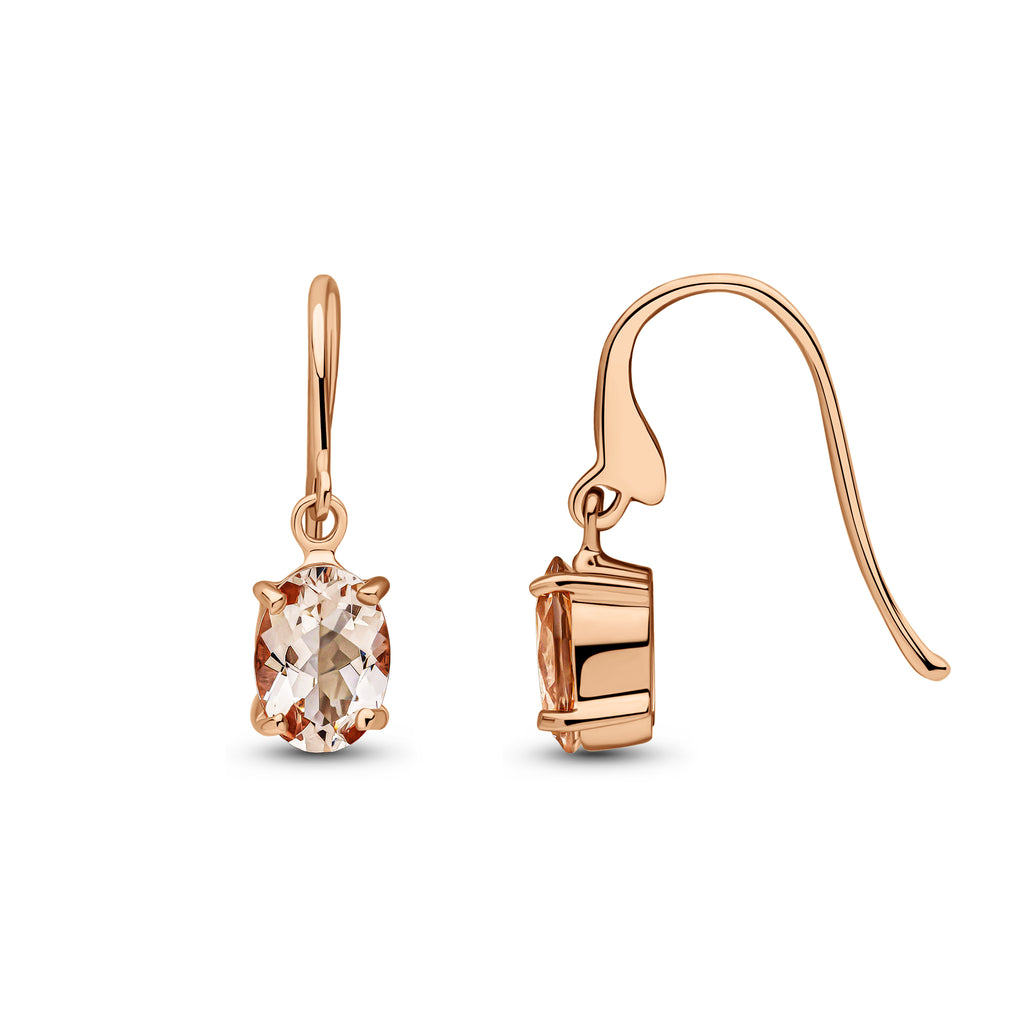 9CT Rose Gold Oval Morganite Claw Hook Wire Drop Earrings 7x5mm