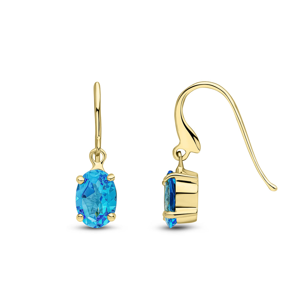 9CT Yellow Gold Oval Swiss Blue Topaz Claw Hook Wire Drop Earrings 7x5mm