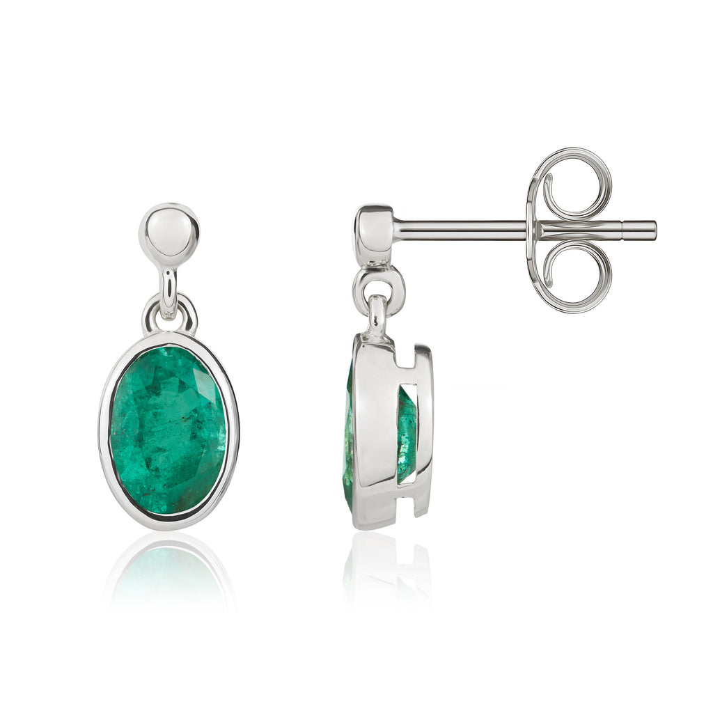 9CT White Gold Oval Emerald 'Eye' Drop Earrings 6x4mm