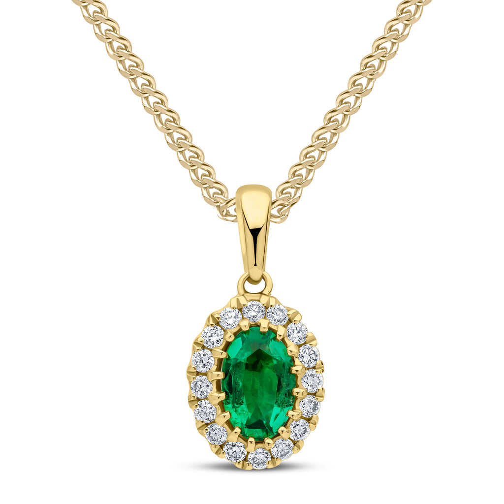 18CT Yellow Gold Oval Emerald & Diamond Cluster Pendant 6x4mm