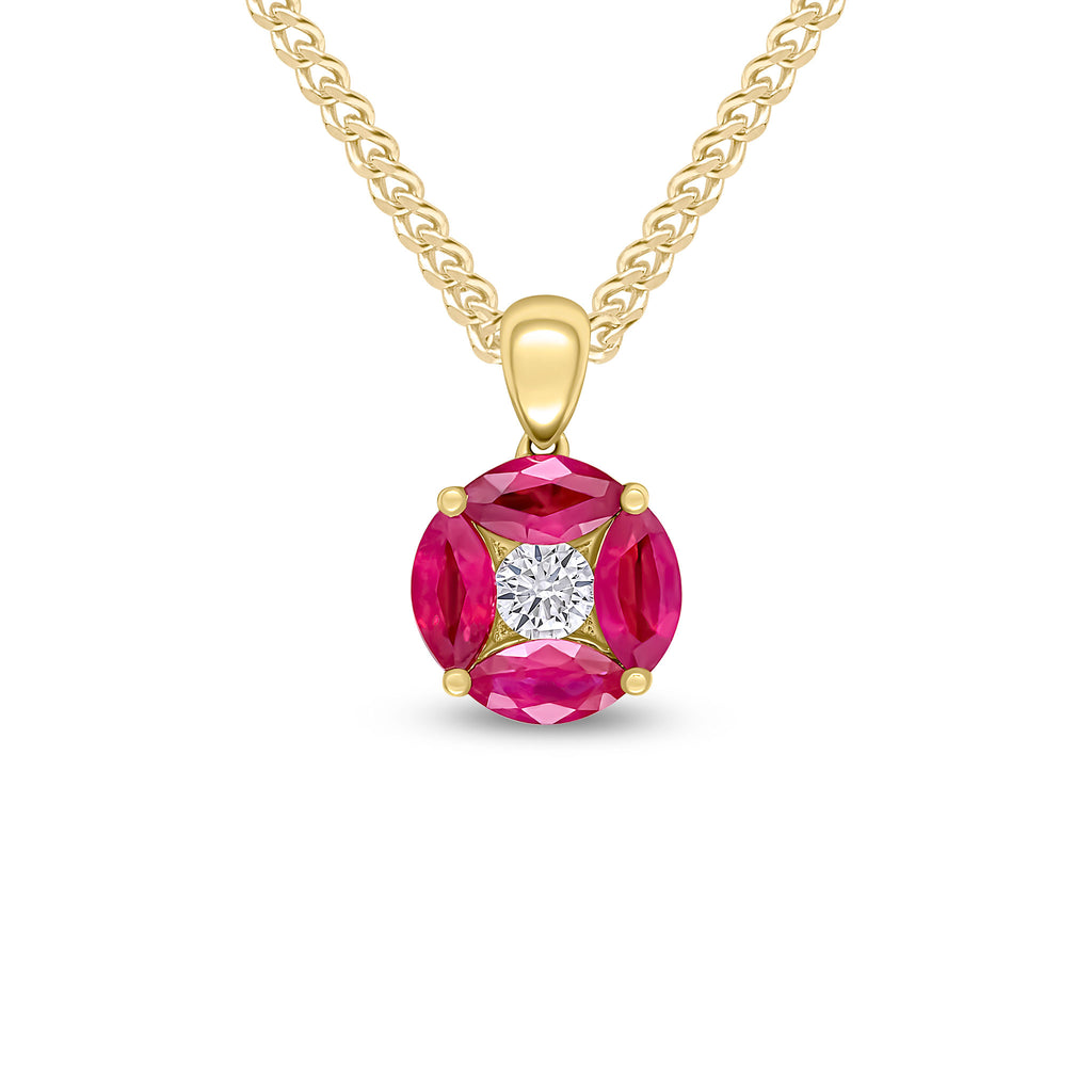 18CT Yellow Gold Marquise Ruby & Diamond Cluster Pendant 9mm