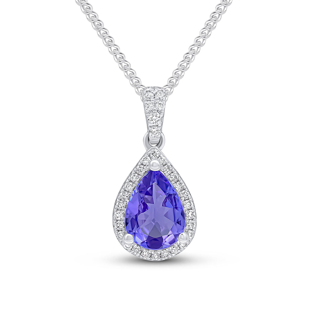 18CT White Gold Pear Shaped Tanzanite & Diamond Cluster Pendant 8x6mm