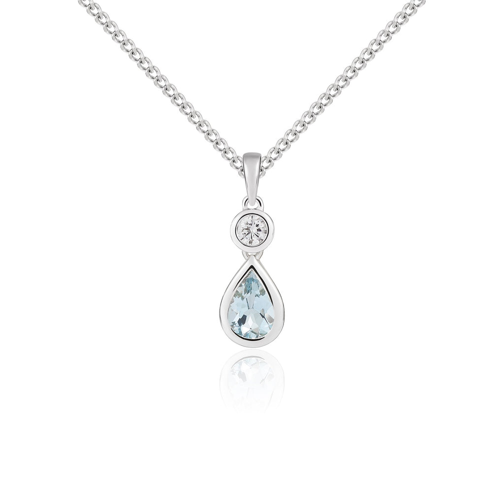 18CT White Gold Pear Shaped Aquamarine & Round Diamond Two Stone Pendant 6x4mm