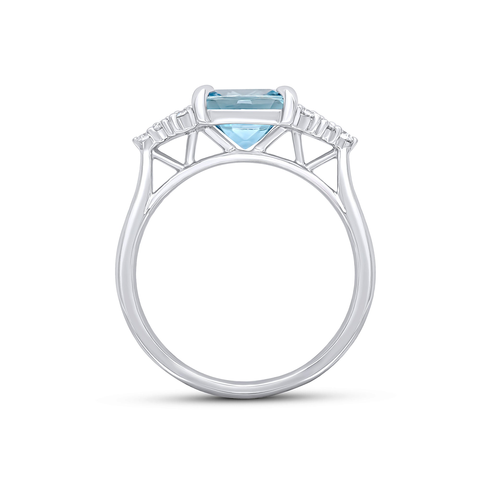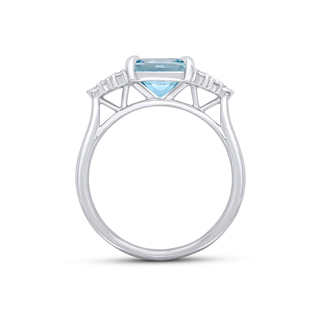 18CT White Gold Claw Set Cushion Aquamarine & Diamond Trefoil Ring 8mm