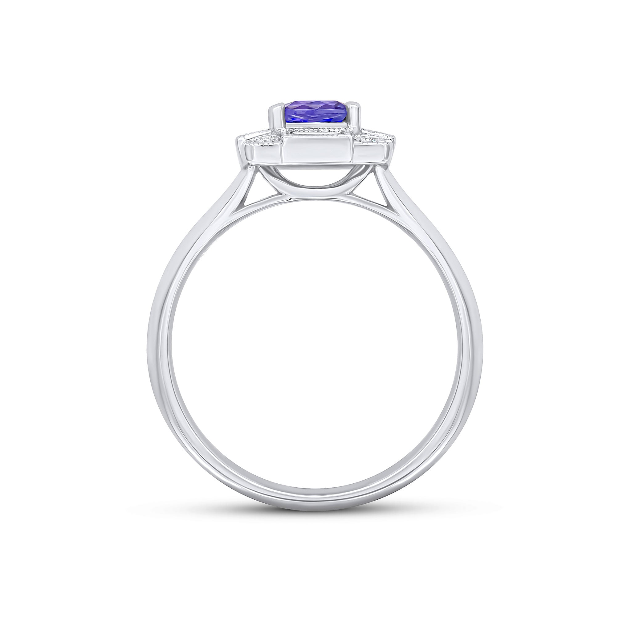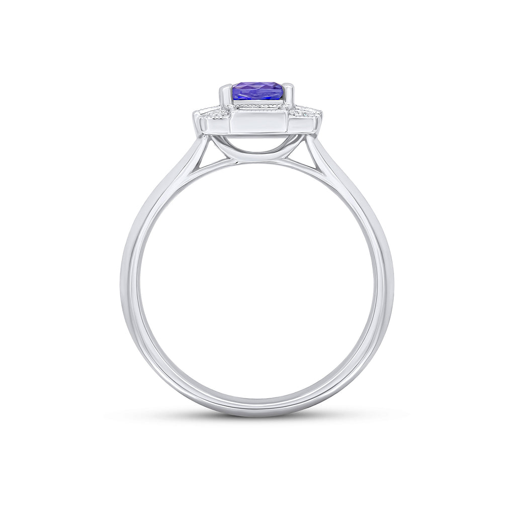 18CT White Gold Claw Set Cushion Tanzanite & Millegrain Baguette & Round Diamond Fancy Cluster Ring 5mm