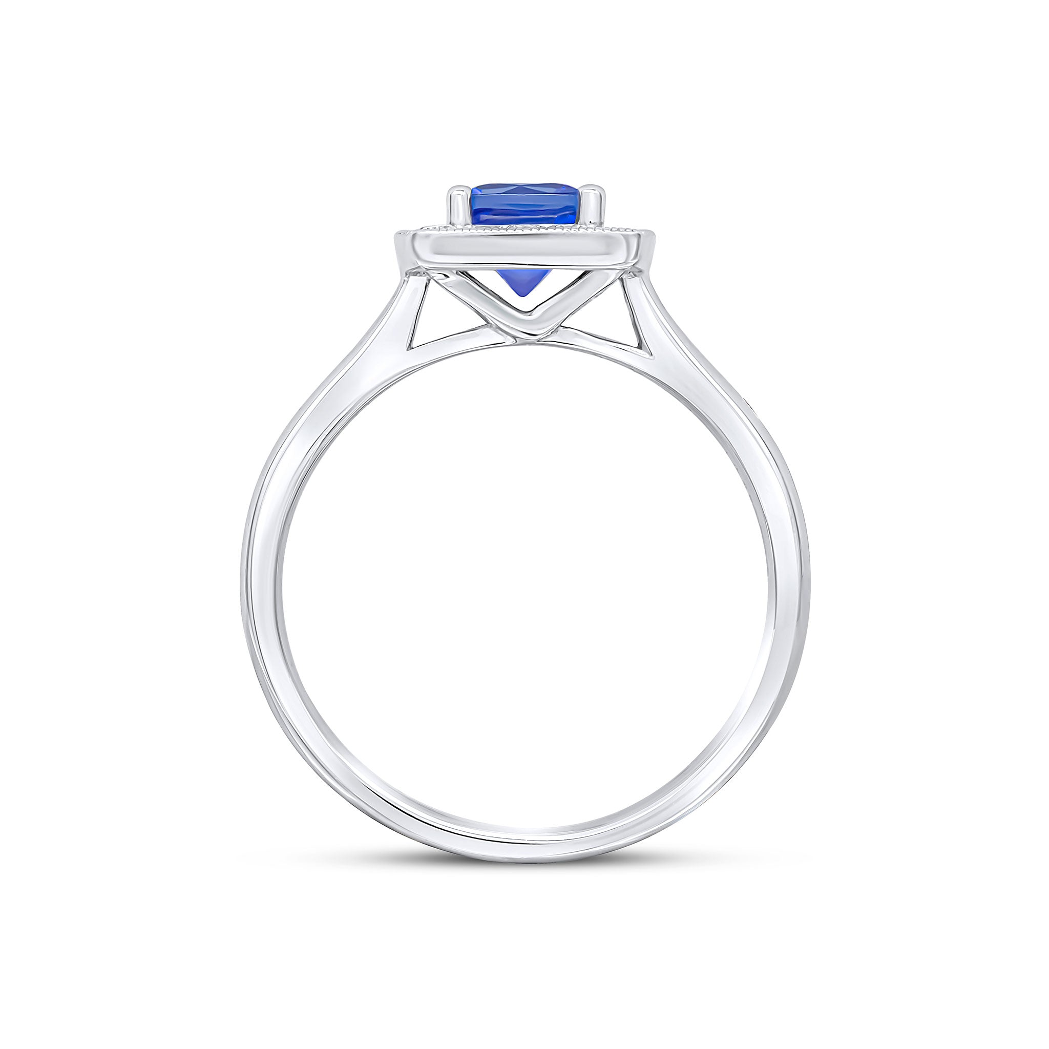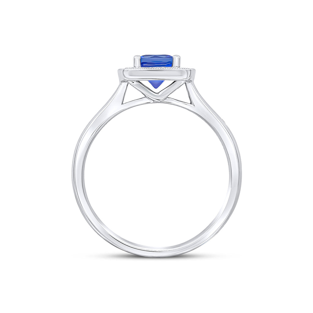 18CT White Gold Claw Set Cushion Tanzanite & Millegrain Round Diamond Cluster Ring 5mm