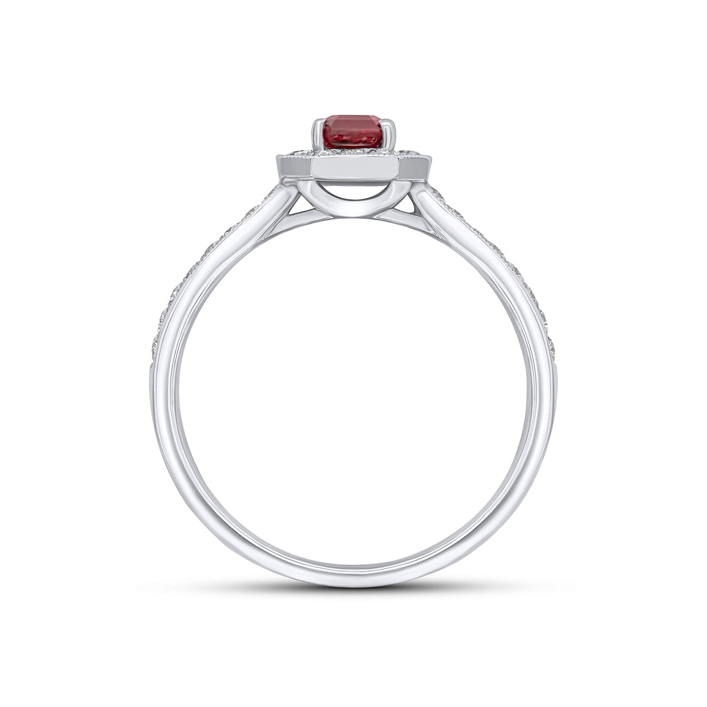 18CT White Gold Claw Set Octagonal Ruby & Millegrain Diamond Cluster Ring with Diamond Band 6x4mm