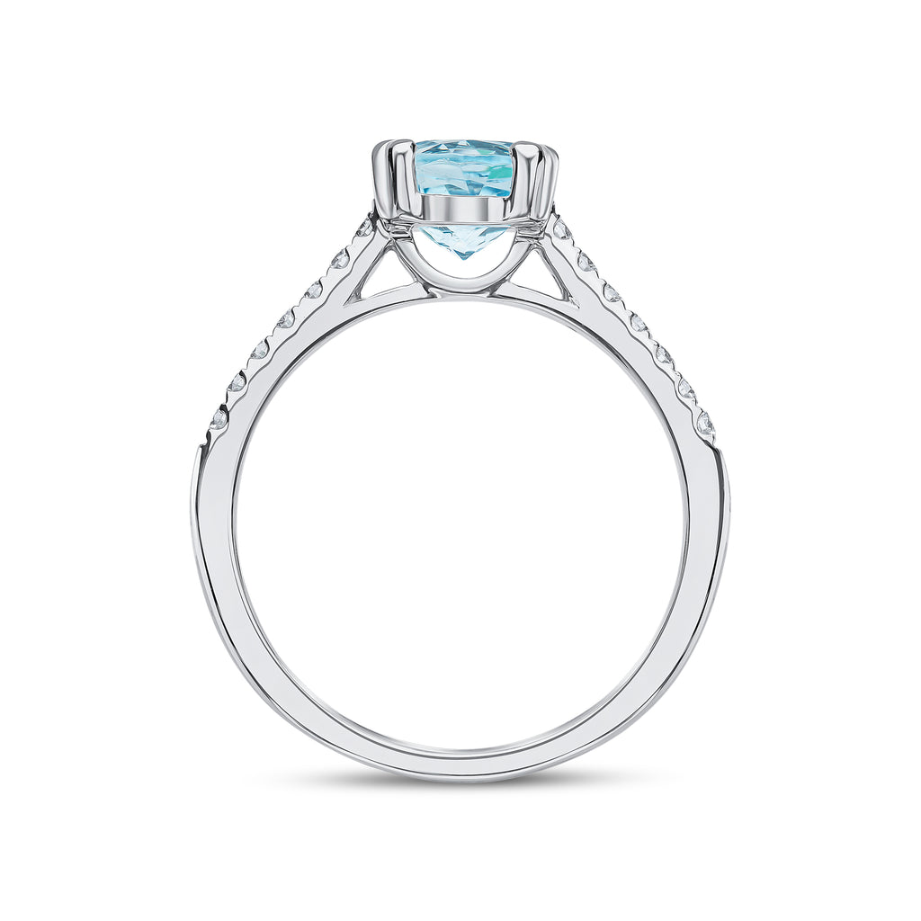 18CT White Gold Claw Set Round Aquamarine Ring with Diamond Shoulders 7mm