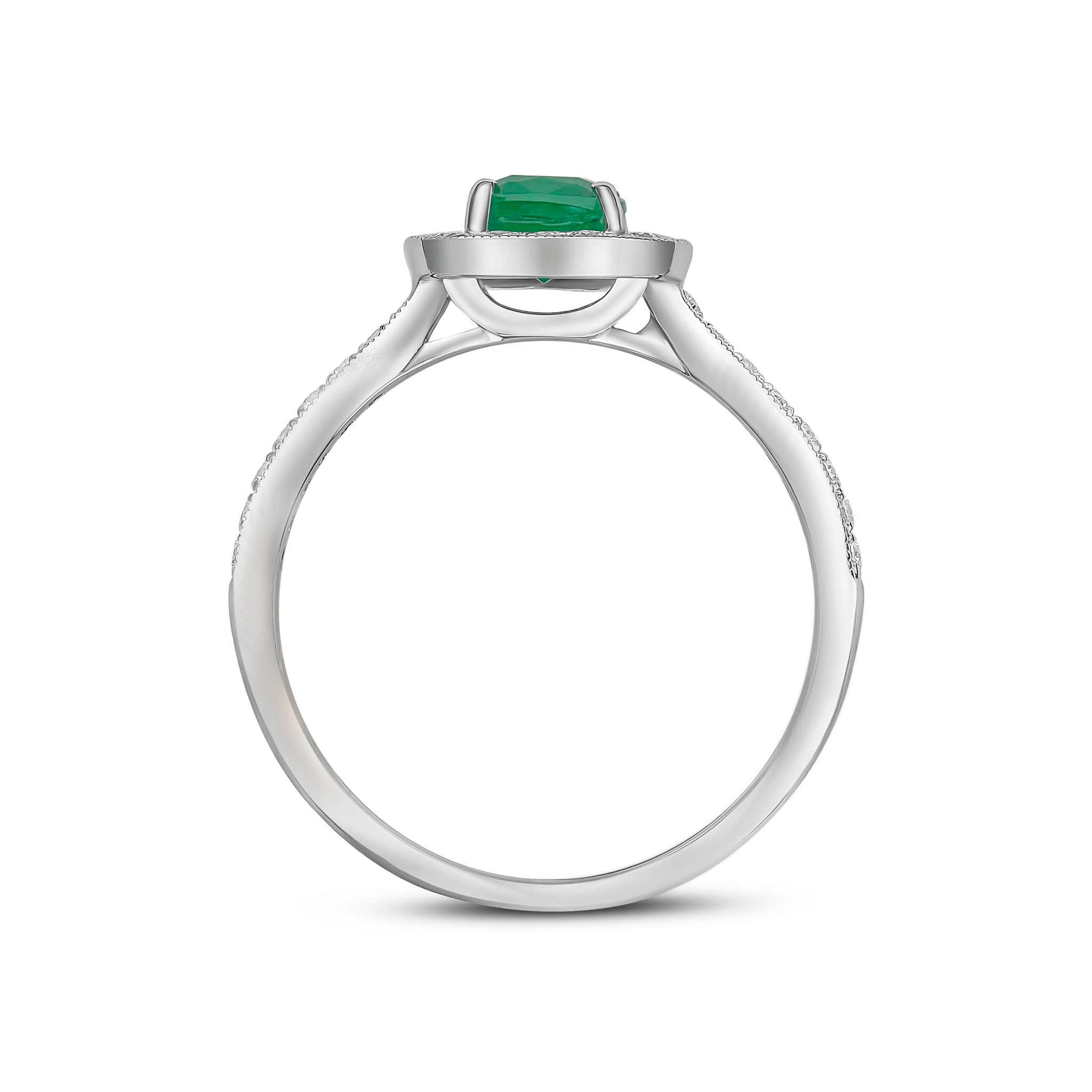18CT White Gold Cushion Emerald & Diamond Millegrain Cluster Ring with Diamond Band 5mm