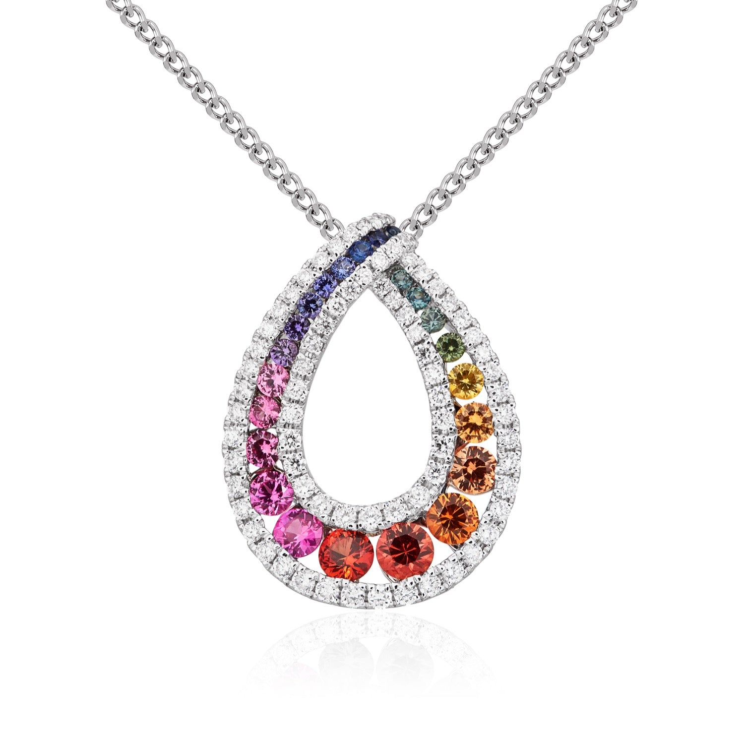 18CT White Gold Multi Sapphire & Diamond Loop Pendant