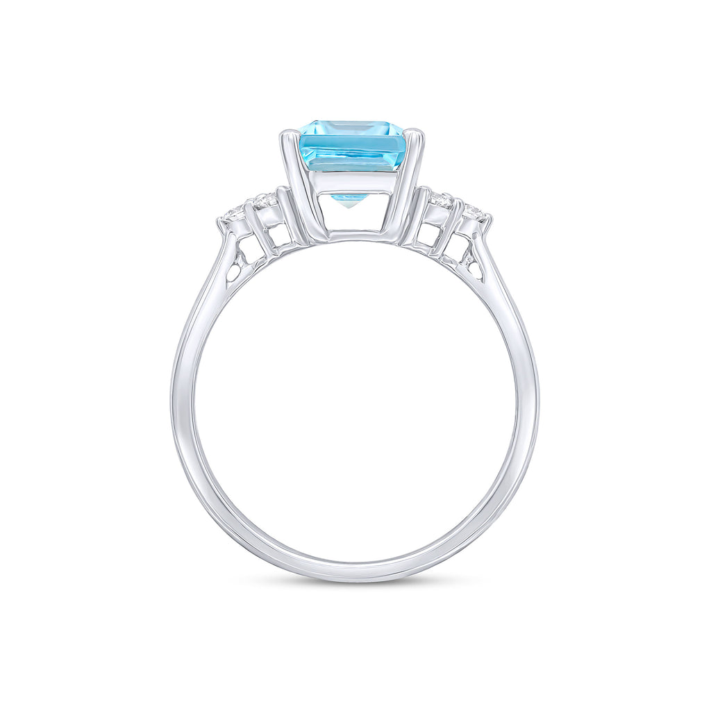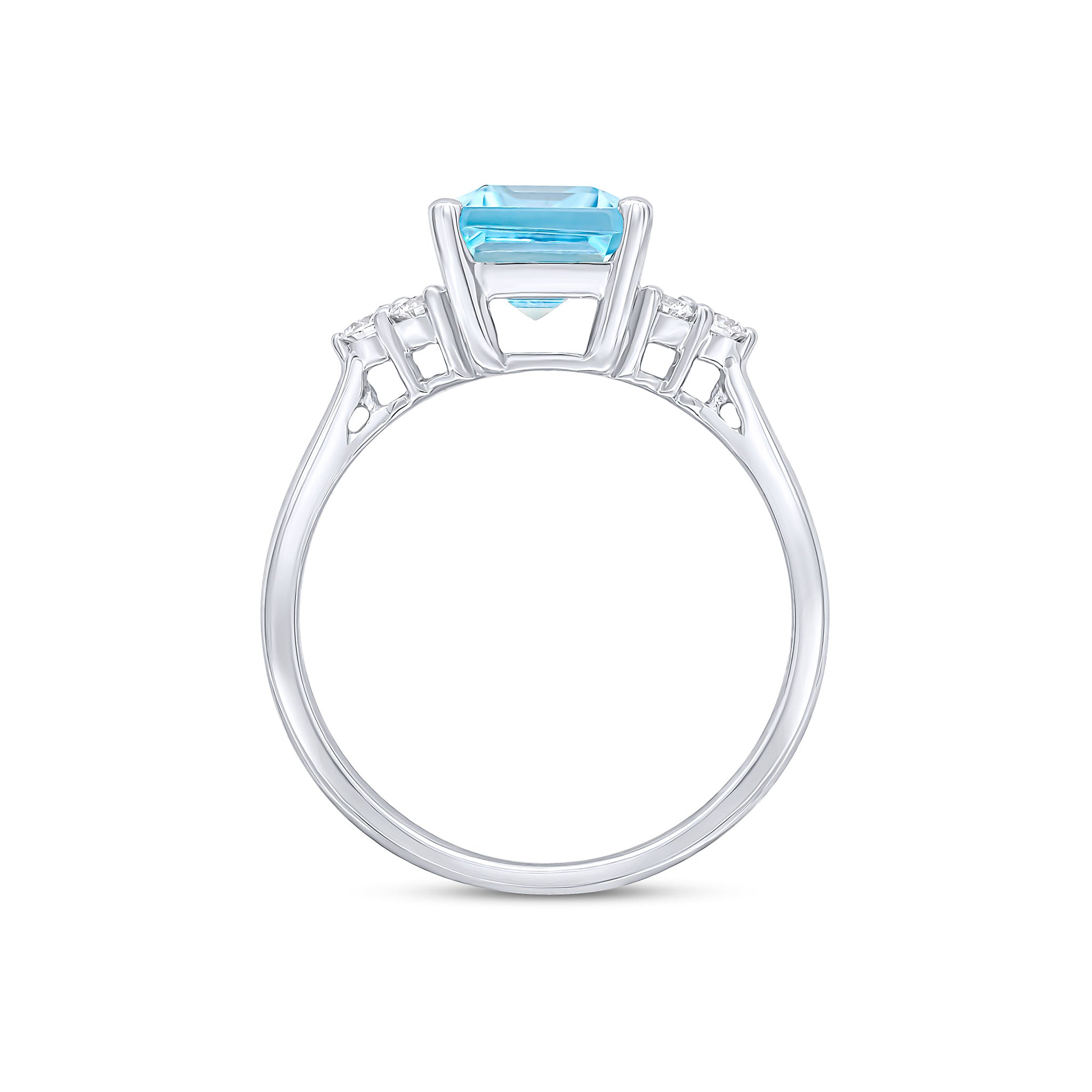 18CT White Gold Octagonal Aquamarine & Diamond Trefoil Ring 9x7mm
