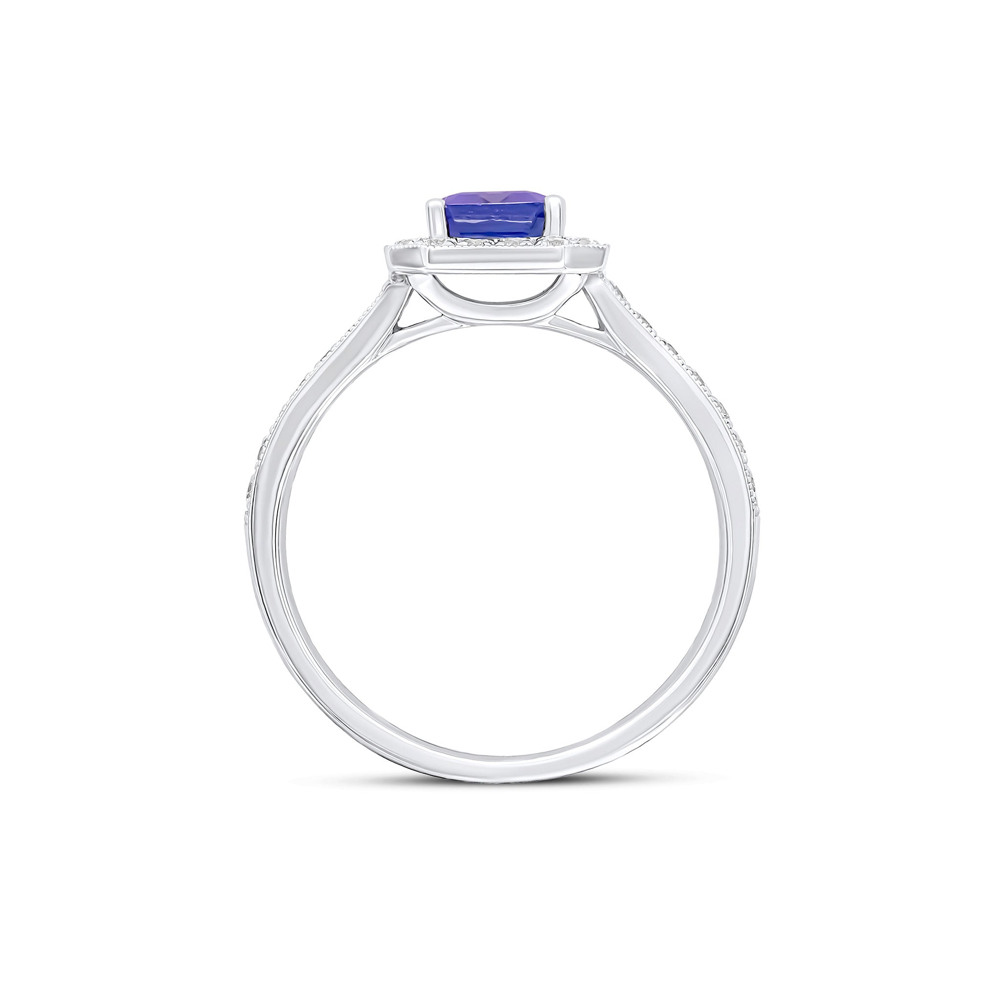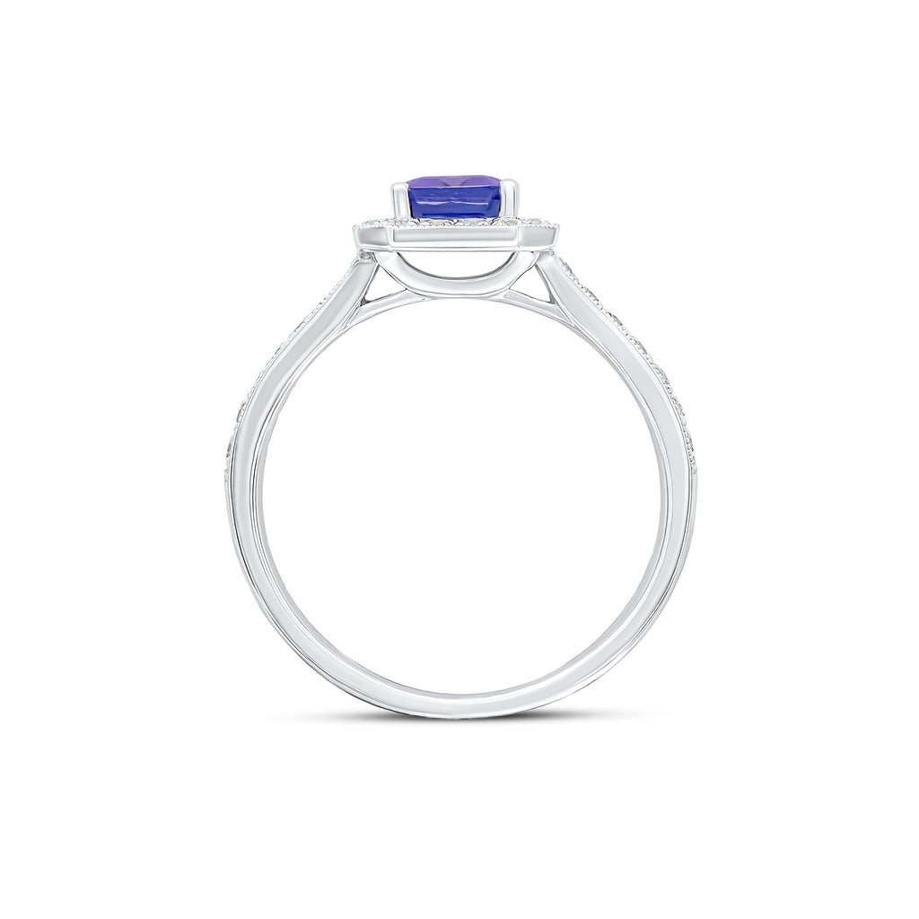 18CT White Gold Octagonal Claw Set Tanzanite & Millegrain Set Round Diamond Cluster Ring with Millegrain Set Diamond Shoulders7x5mm