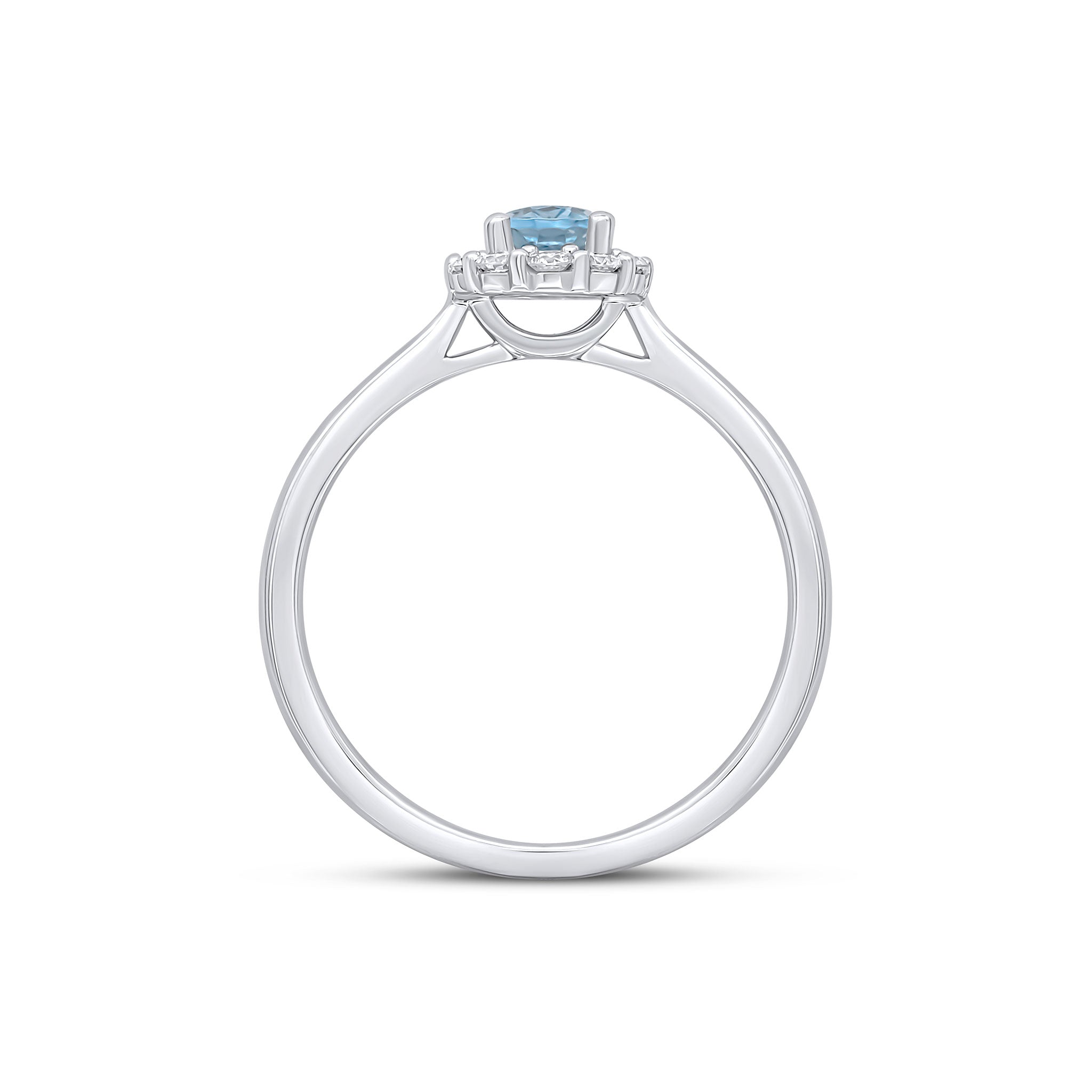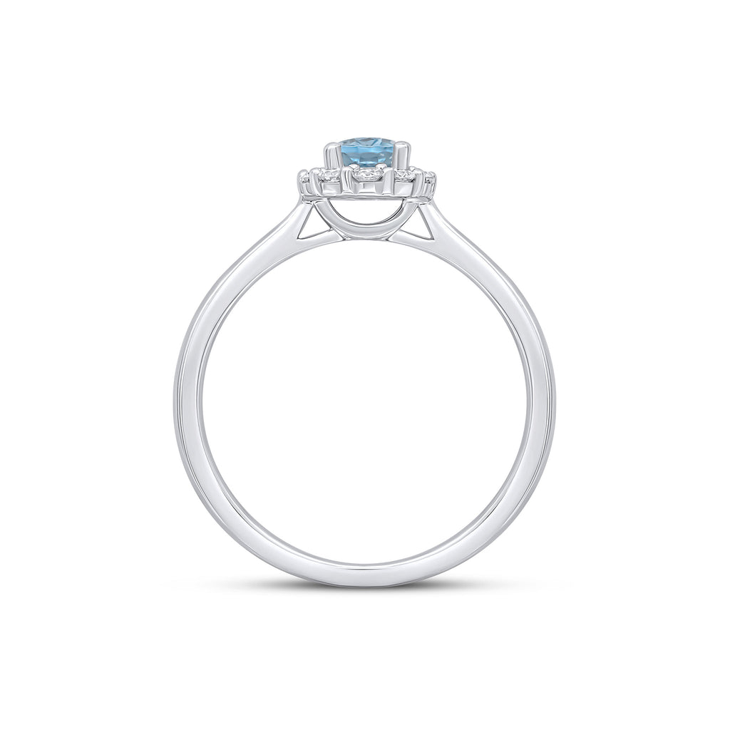 18CT White Gold Oval Aquamarine & Diamond Claw Set Cluster Ring 6x4mm