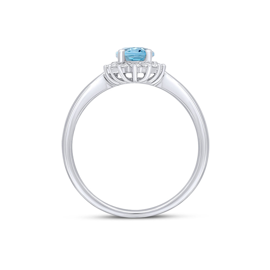 18CT White Gold Oval Aquamarine & Diamond Claw Set Cluster Ring 7x5mm