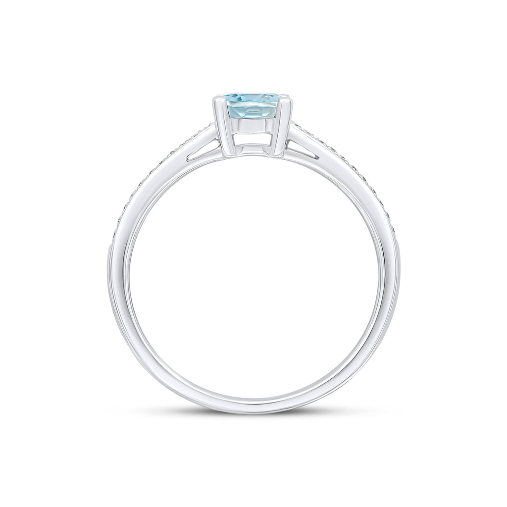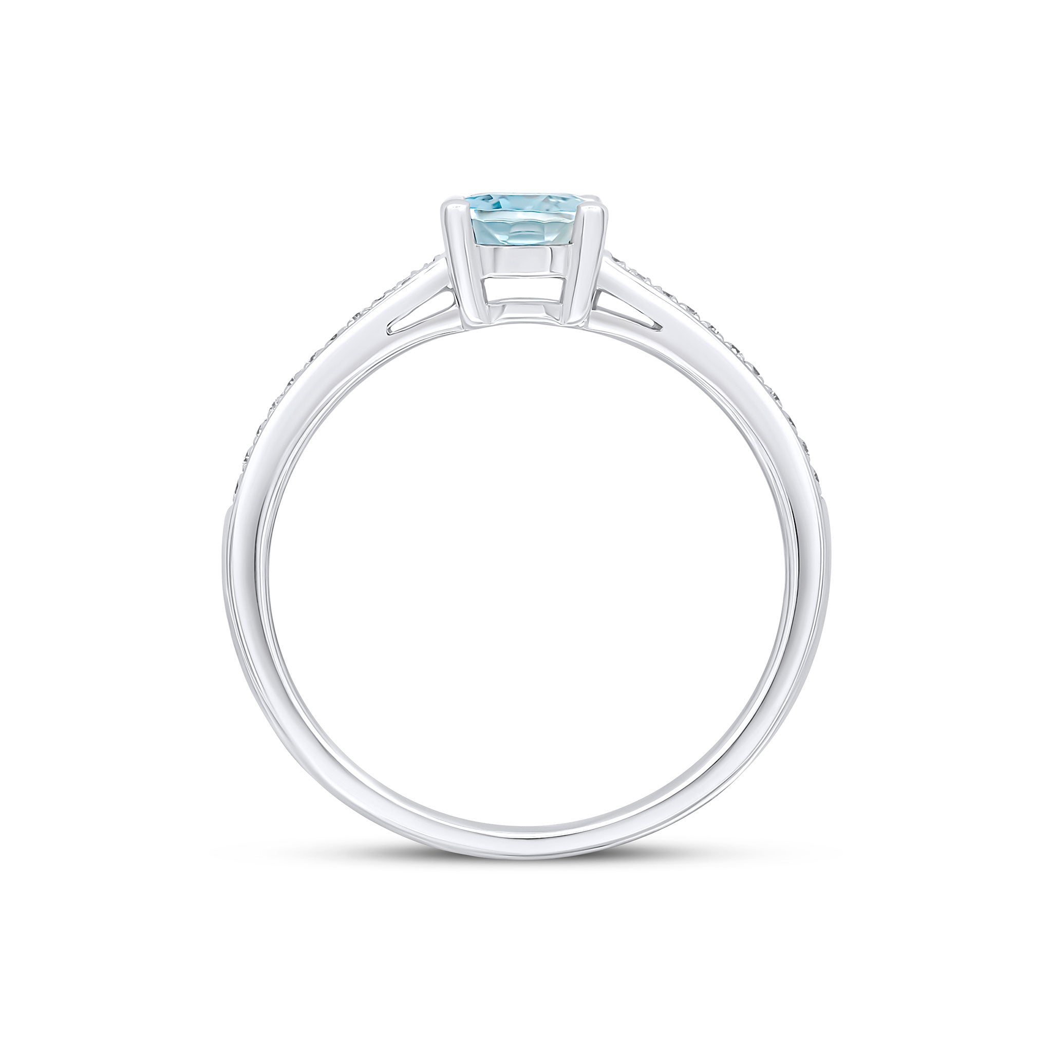 18CT White Gold Oval Aquamarine Ring with Grain Set Diamond Shoulders 7x5mm