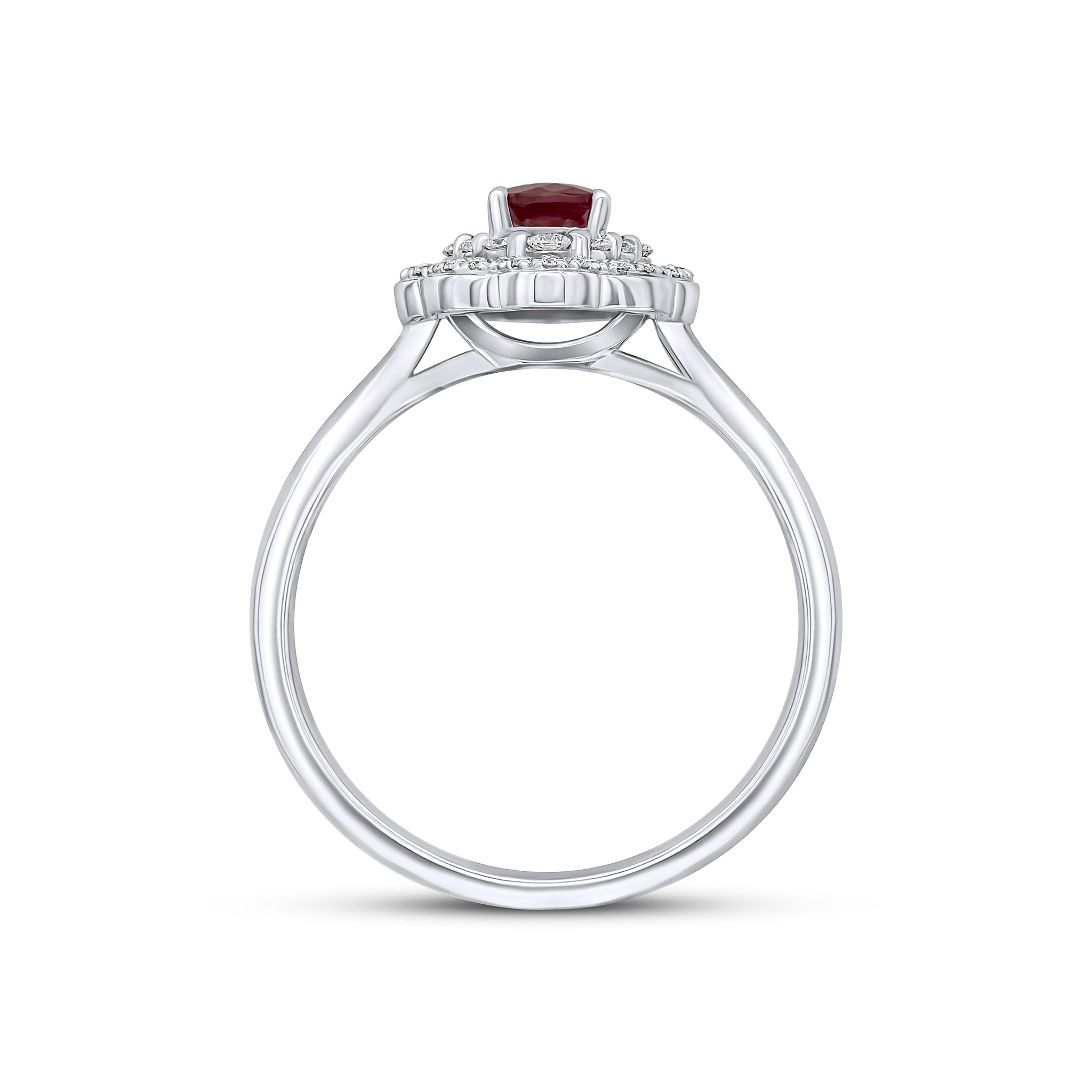 18CT White Gold Oval Ruby & Diamond Two Row Fancy Cluster Ring