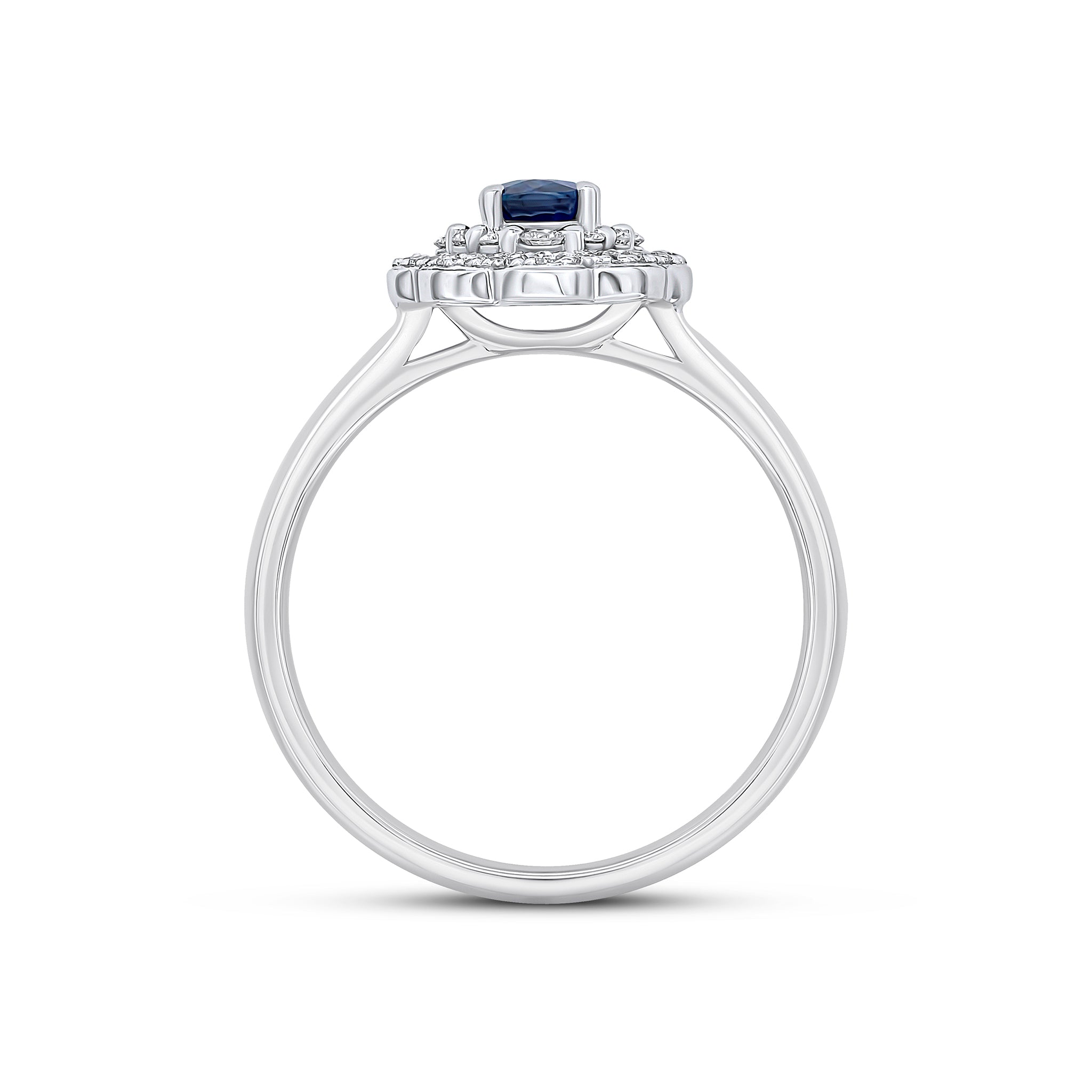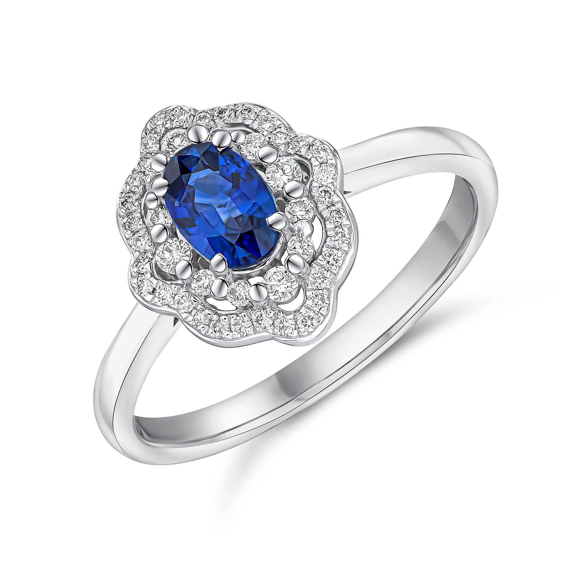 18CT White Gold Oval Sapphire & Diamond Two Row Fancy Cluster Ring