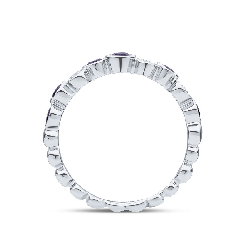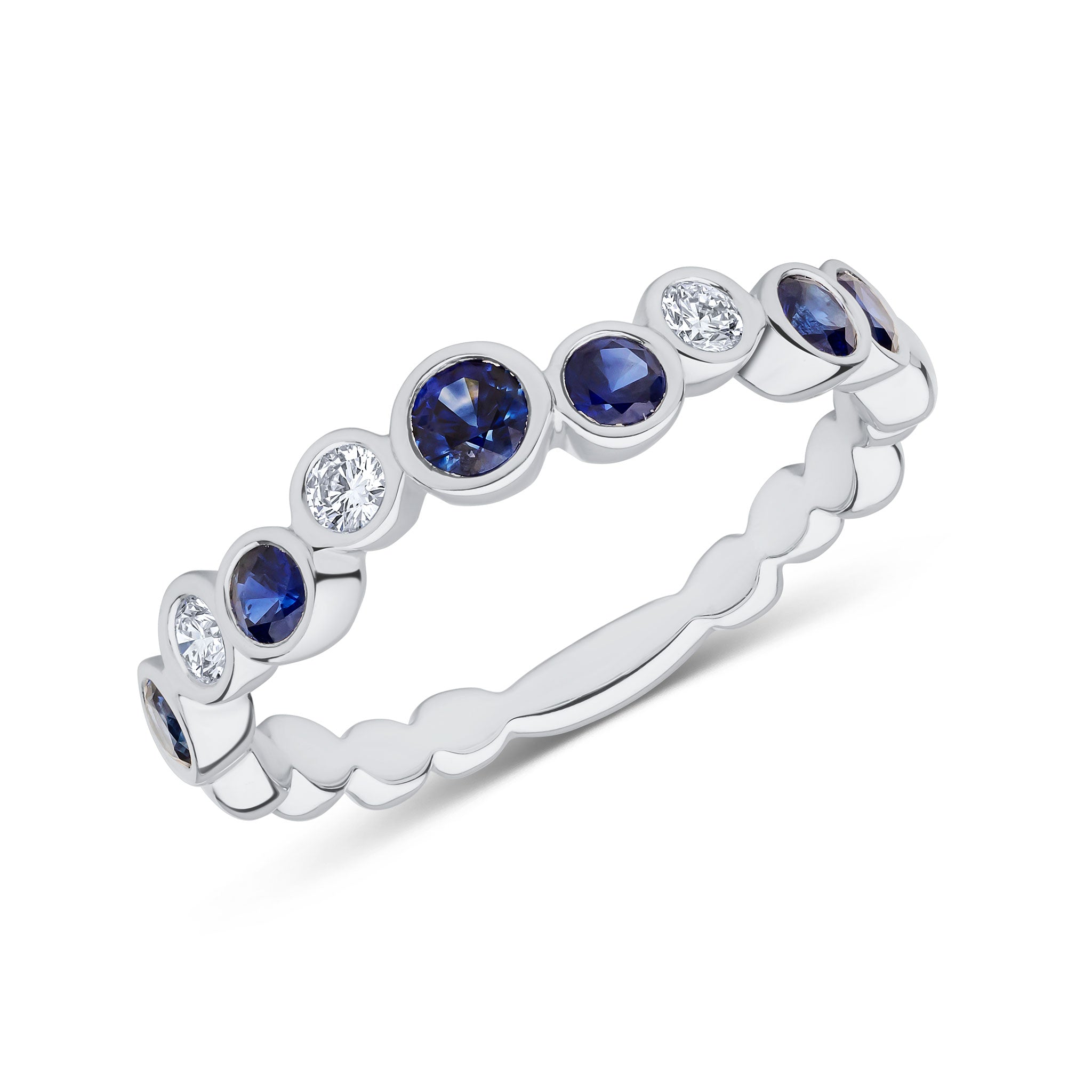 18CT White Gold Round Blue Sapphire & Diamond Single Row Bubble Ring