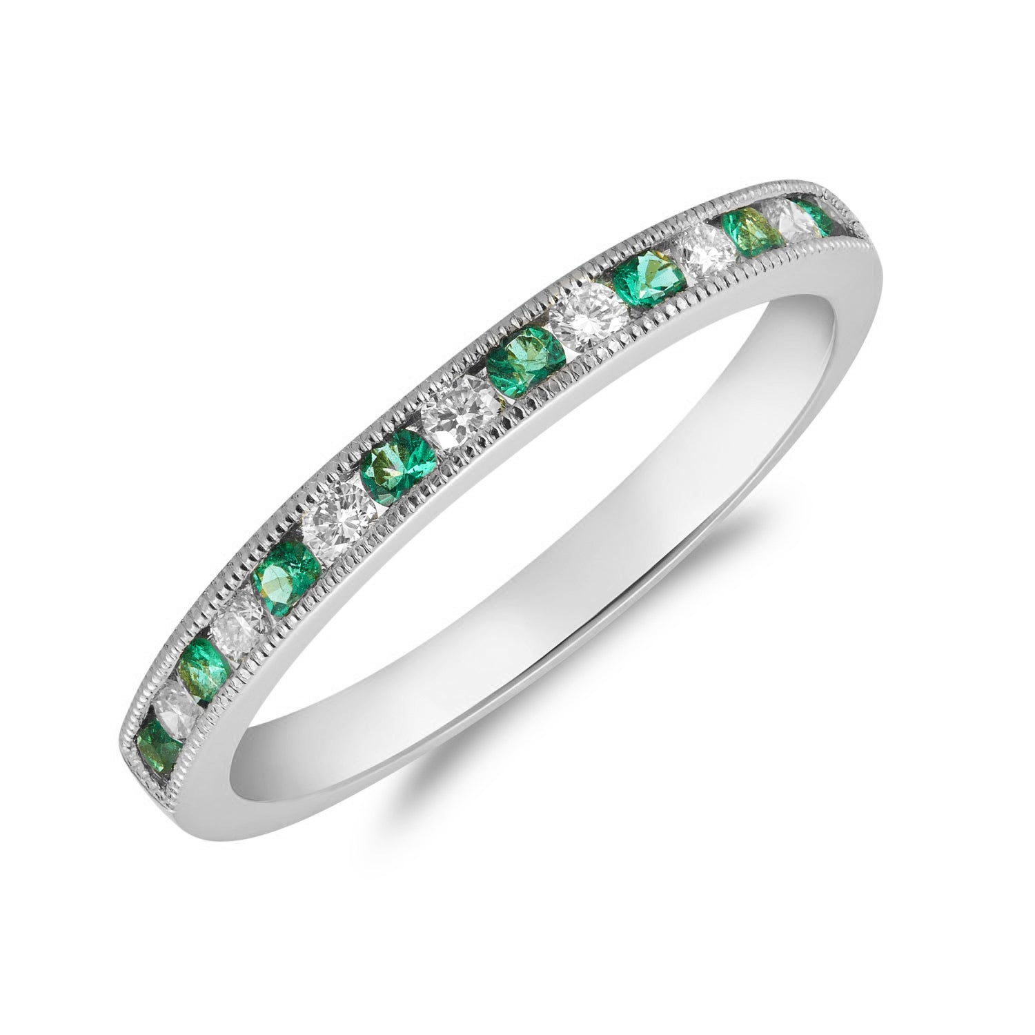 18CT White Gold Round Emerald & Diamond 1/2 Eternity Ring