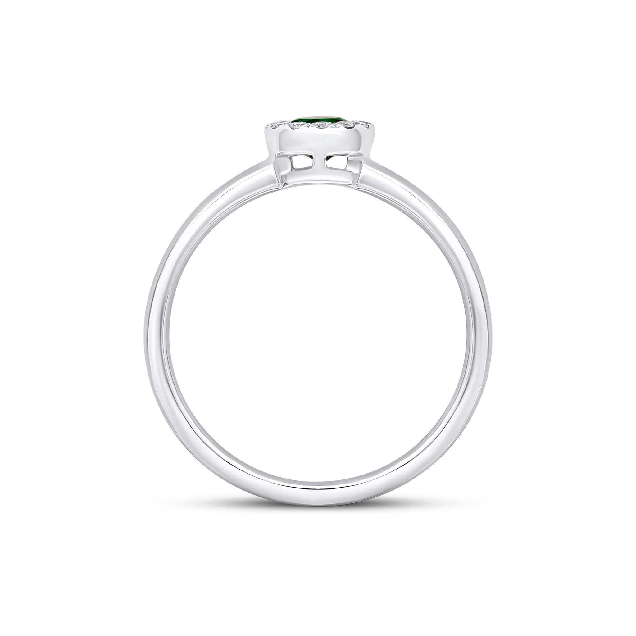 18CT White Gold Round Emerald & Diamond Cluster Ring 3mm