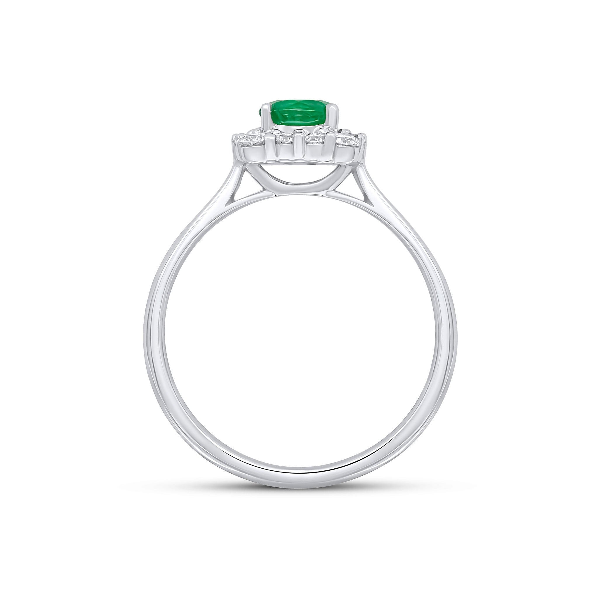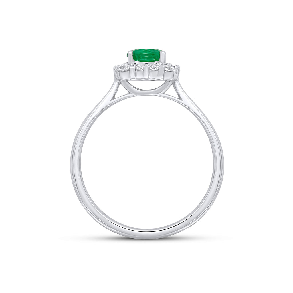 18CT White Gold Round Emerald & Diamond Cushion Cluster Ring 5mm