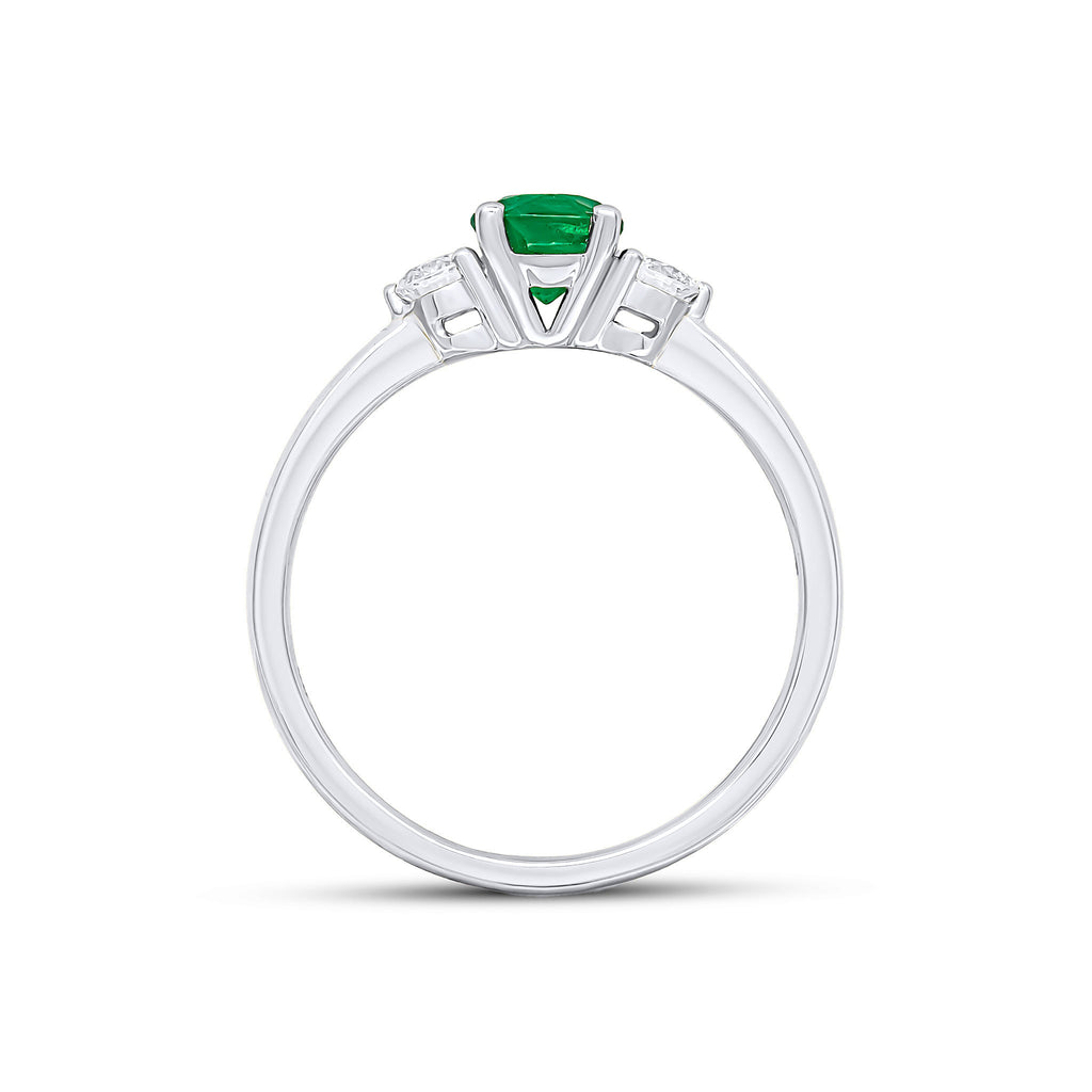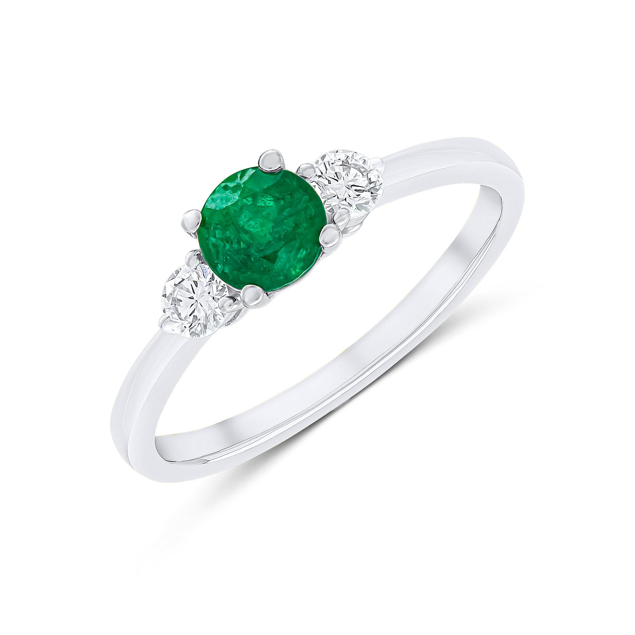 18CT White Gold Round Emerald & Diamond Three Stone Ring 5mm