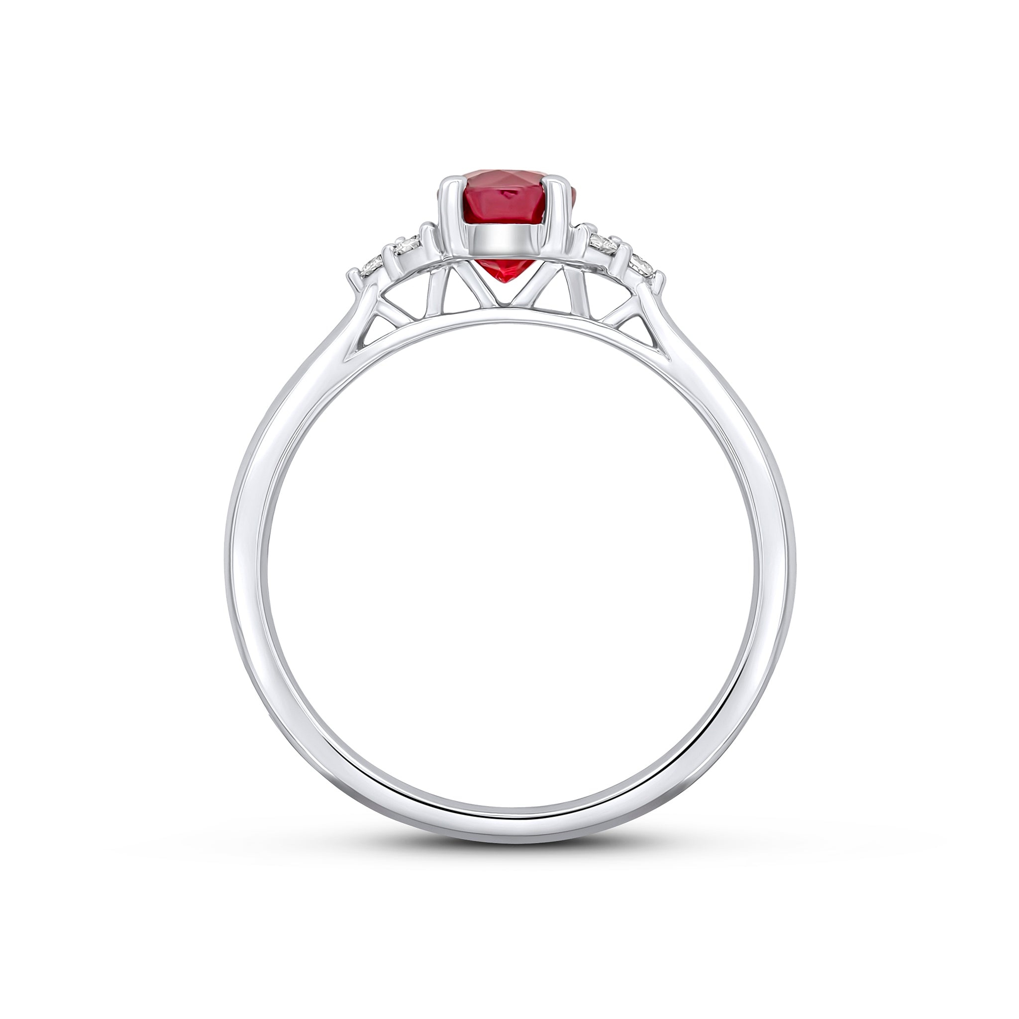 18CT White Gold Round Ruby & Diamond Trefoil Ring 5mm