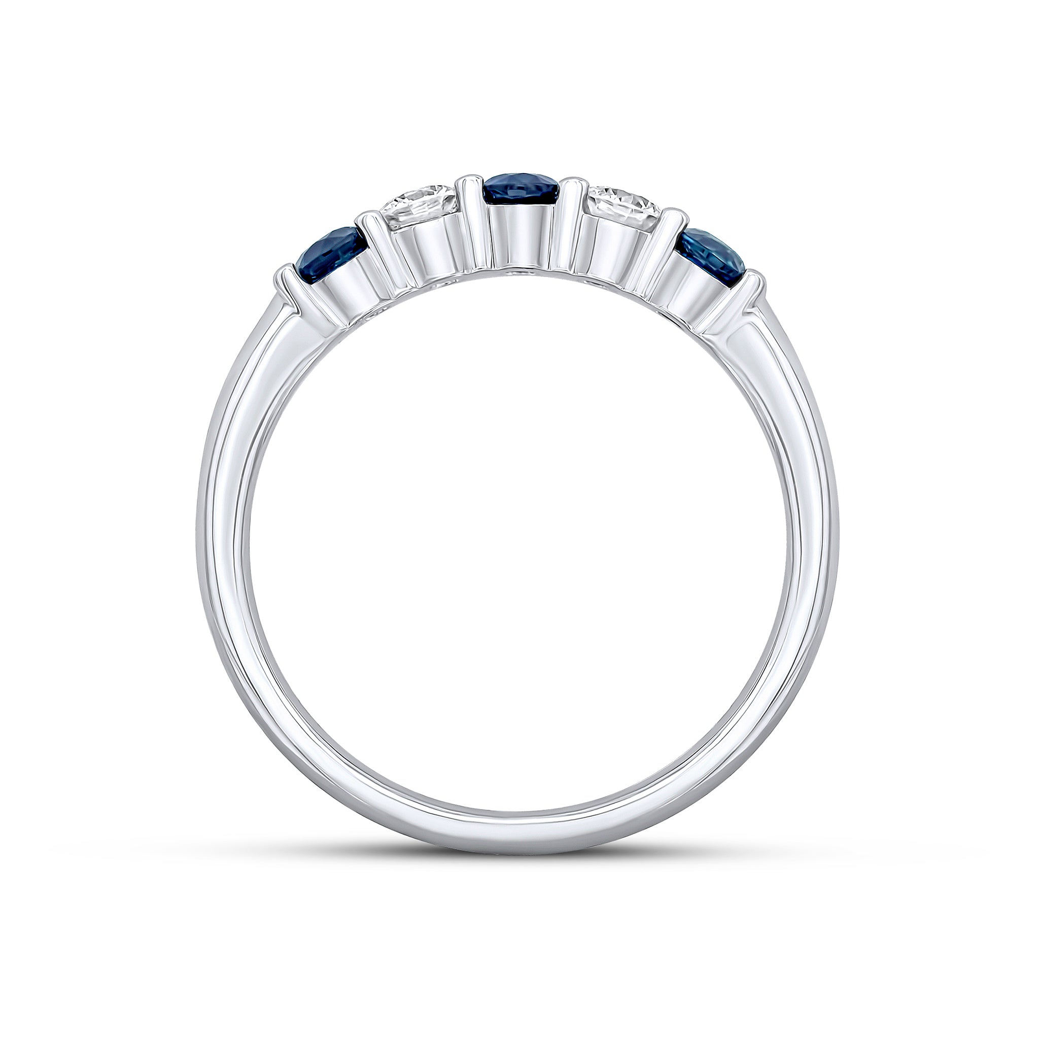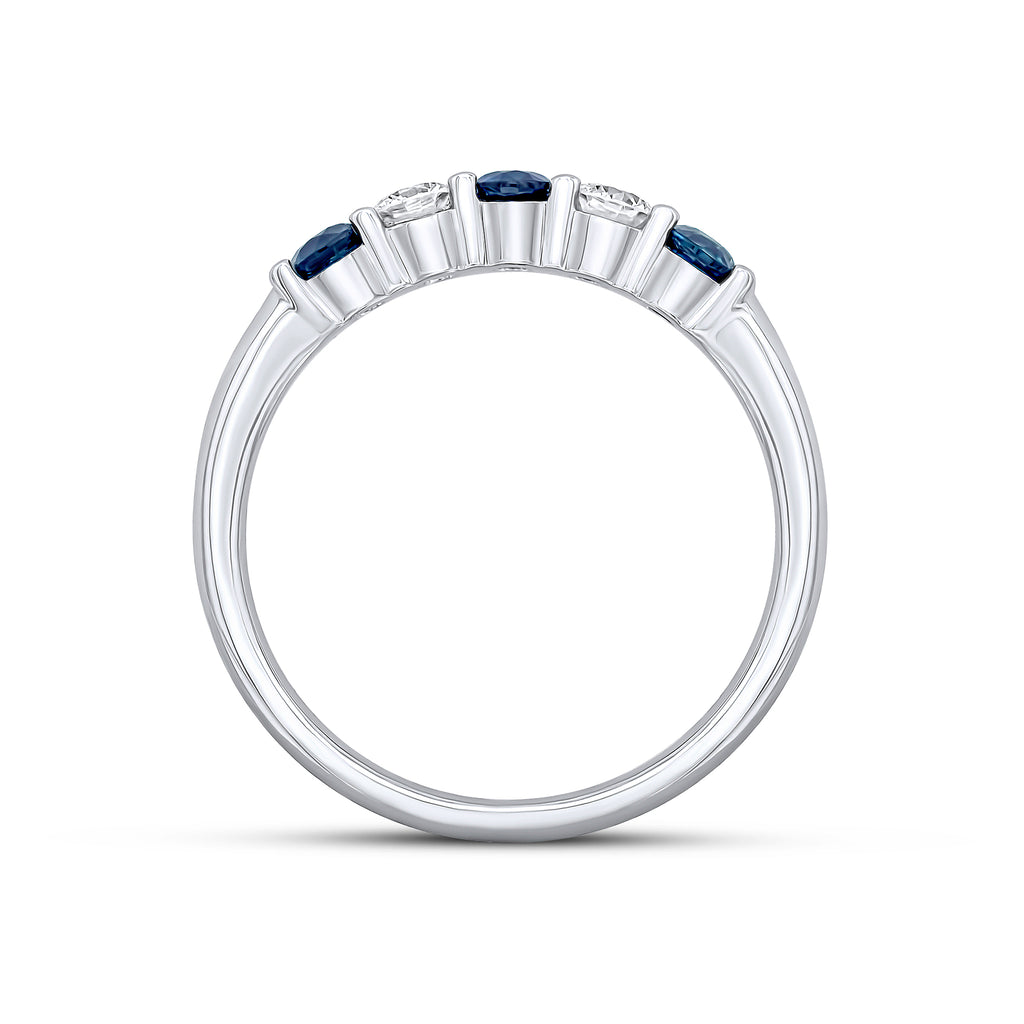 18CT White Gold Round Sapphire & Diamond Claw Set 5 Stone Ring
