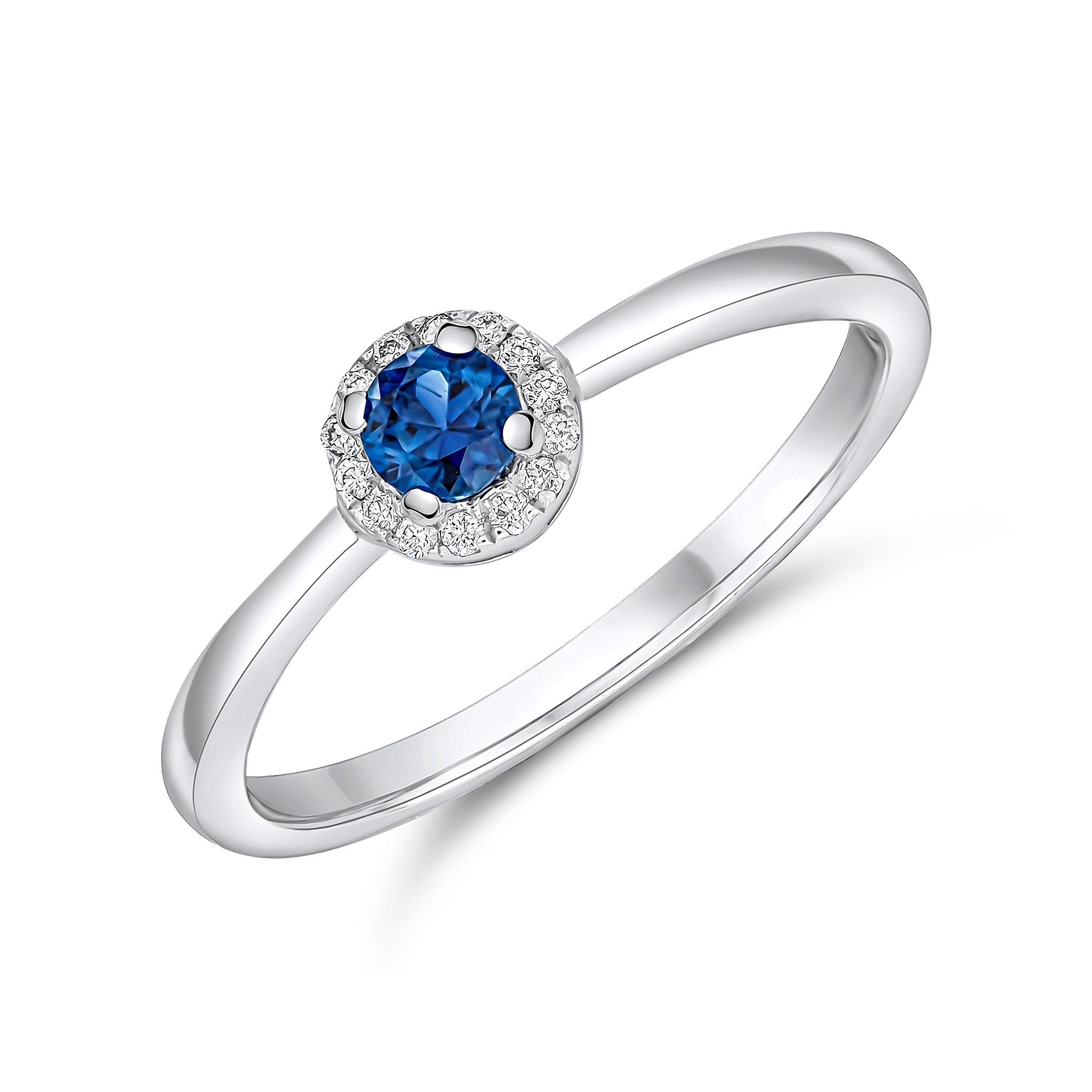 18CT White Gold Round Sapphire & Diamond Claw Set Cluster Ring 3.5mm