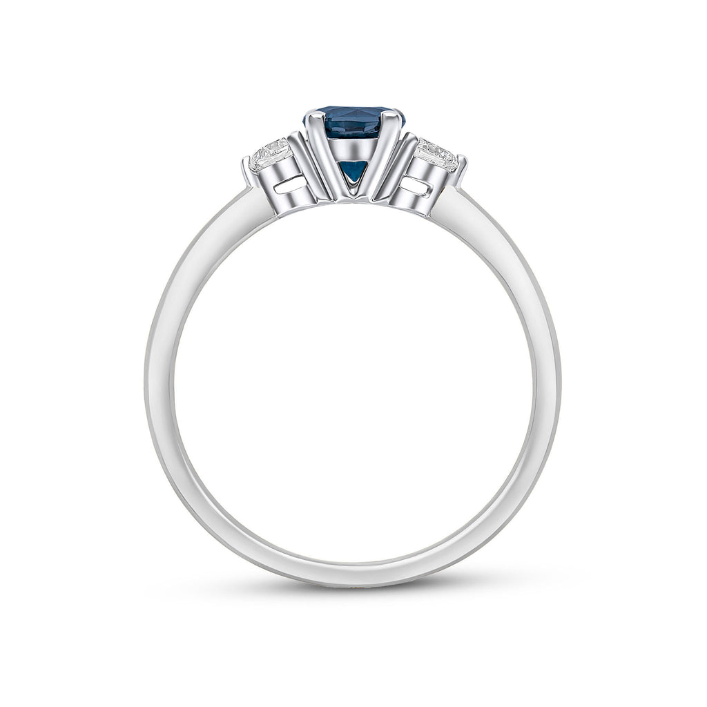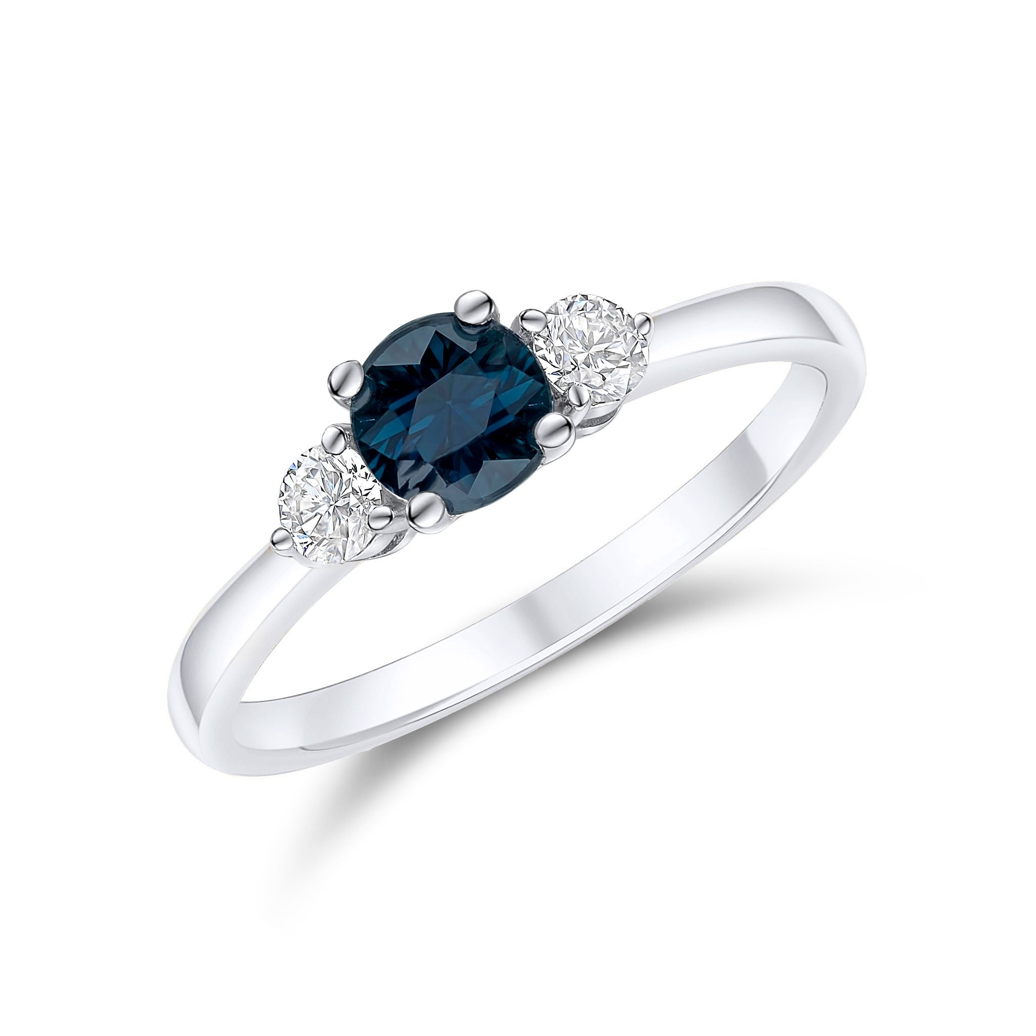 18CT White Gold Round Sapphire & Diamond Three Stone Ring 5mm