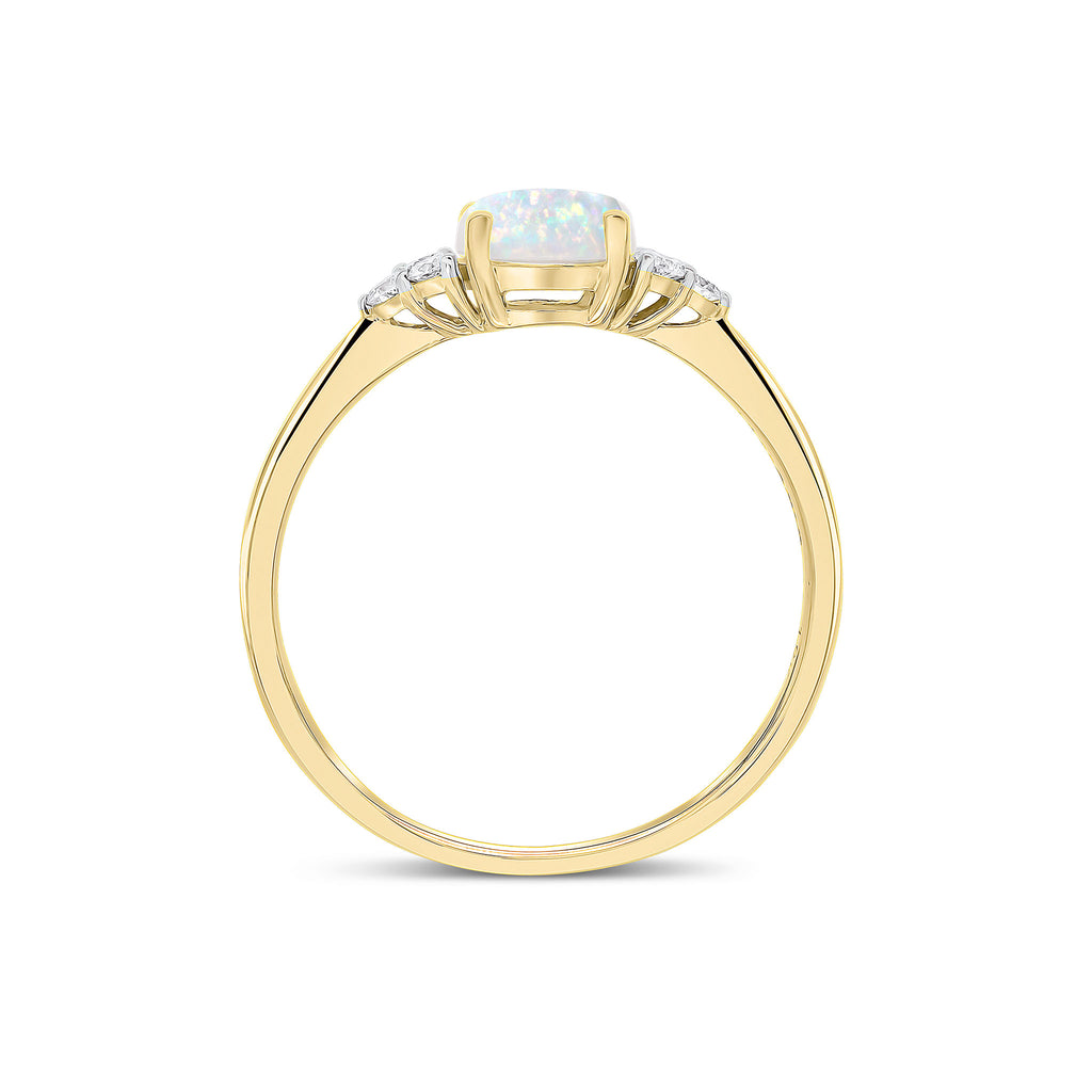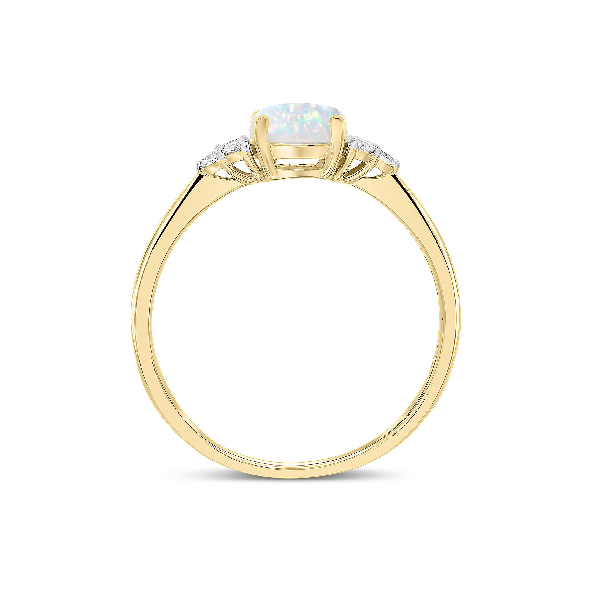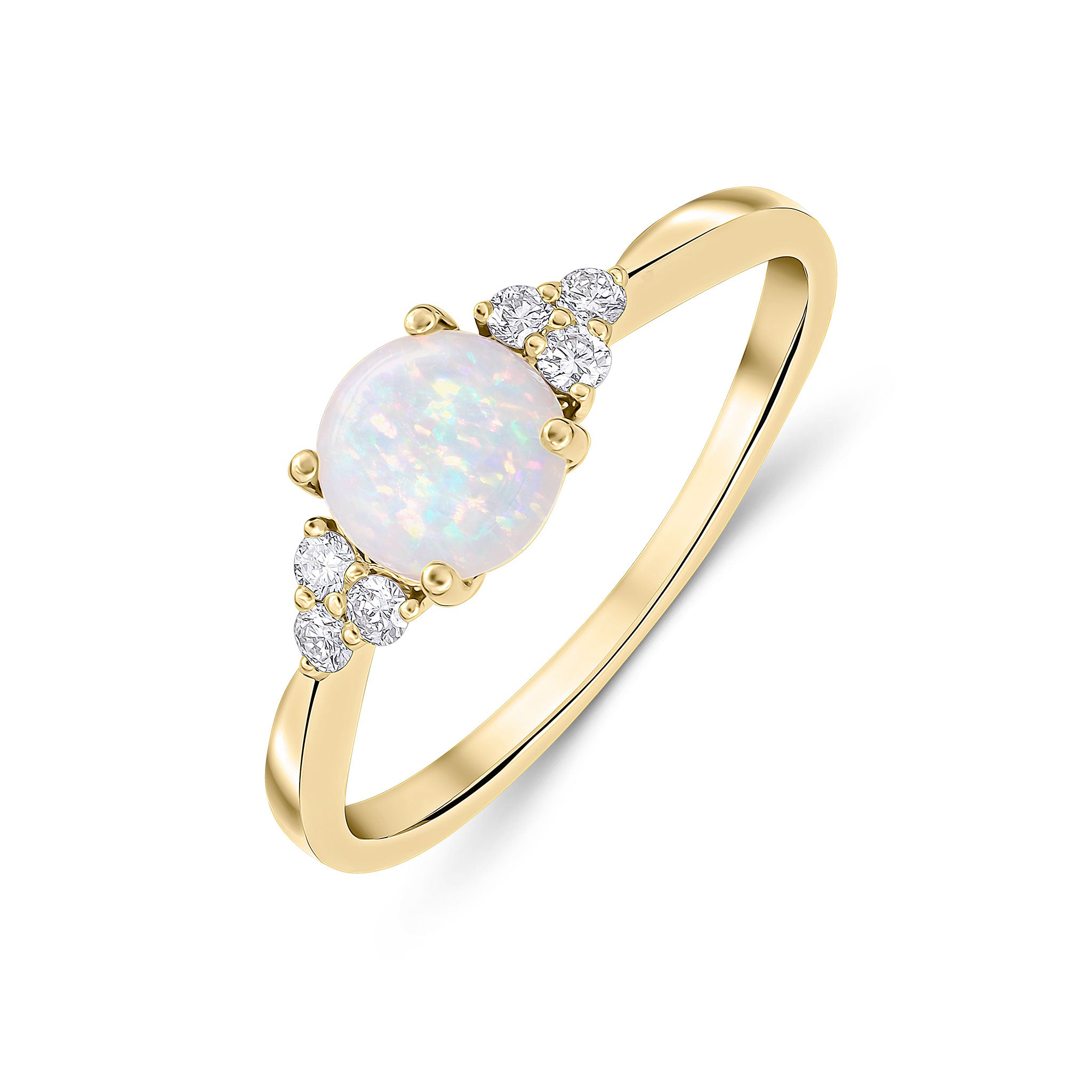 18CT Yellow Gold 6mm Round Opal & Diamond Trefoil Ring