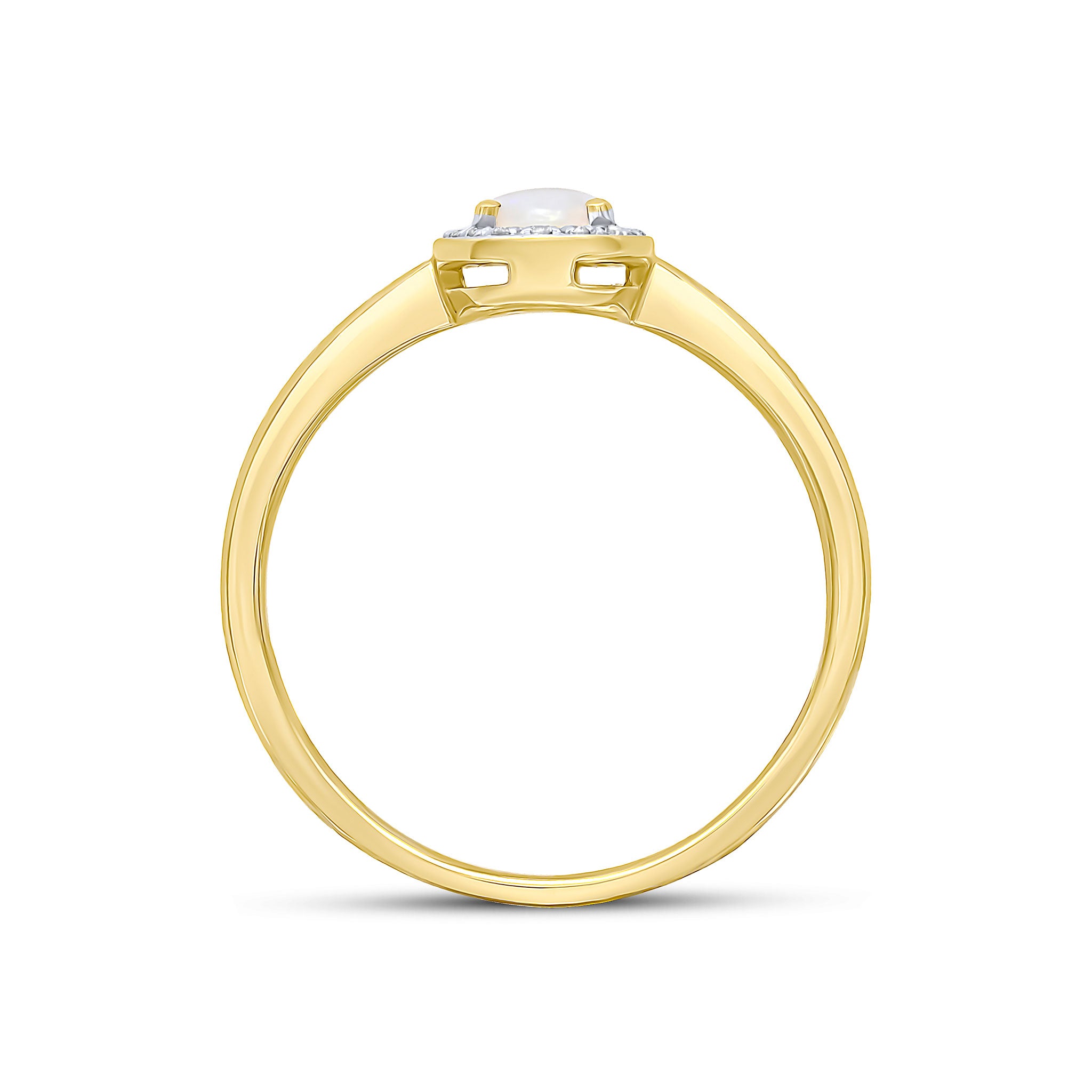 18CT Yellow Gold Claw Set Oval Opal & Grain Set Round Diamond Cluster Ring 6x4mm
