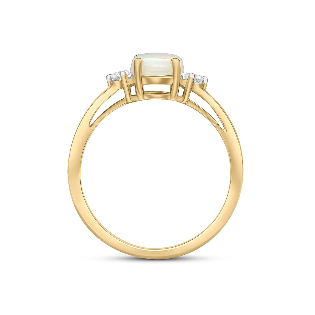 18CT Yellow Gold Claw Set Oval Opal & Round Diamond 3 Stone Ring 8x6mm