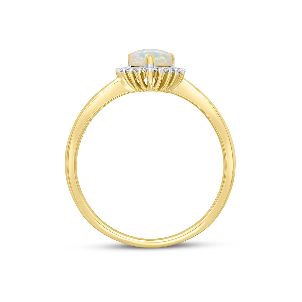 18CT Yellow Gold Claw Set Pear Shaped Opal & Round Diamond Cluster Ring 7x5mm