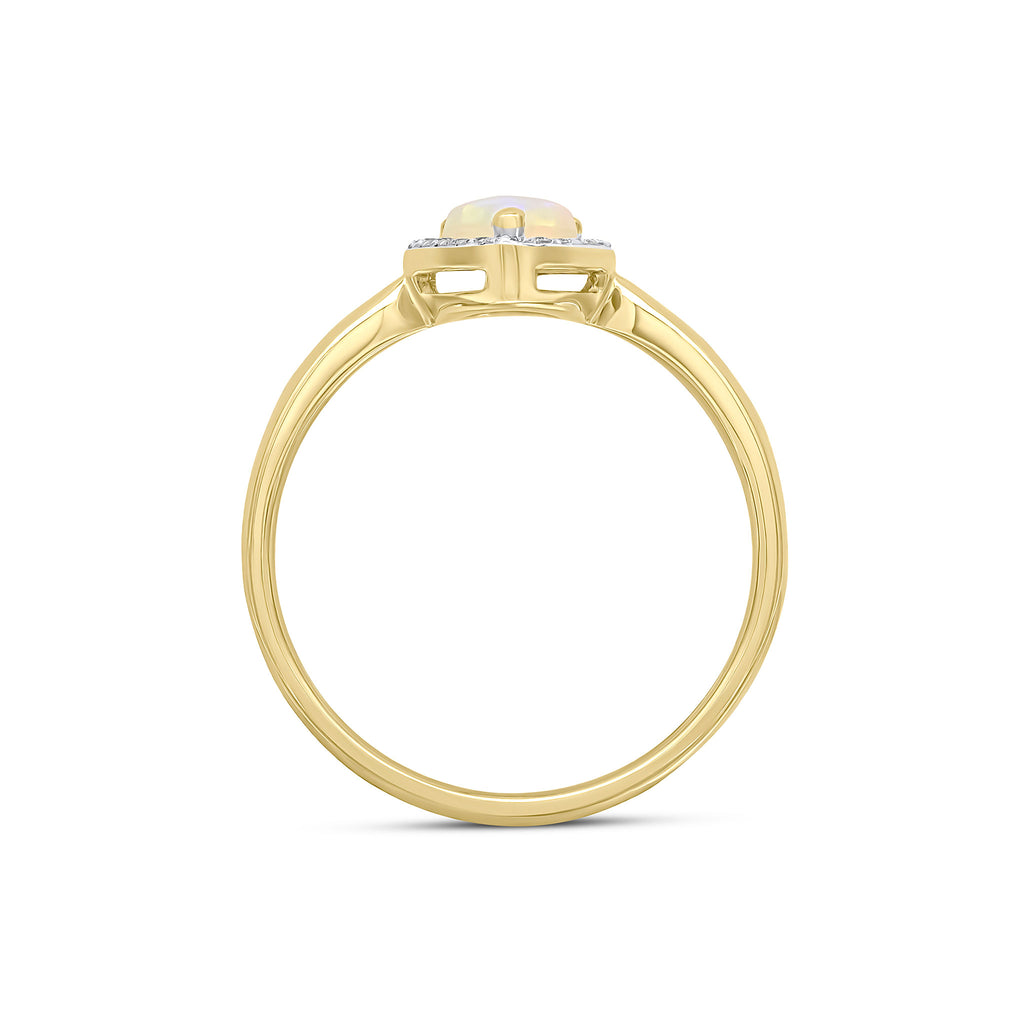 18CT Yellow Gold Claw Set Pear Shaped Opal & Round Diamond Grain Set Cluster Ring 7x5mm