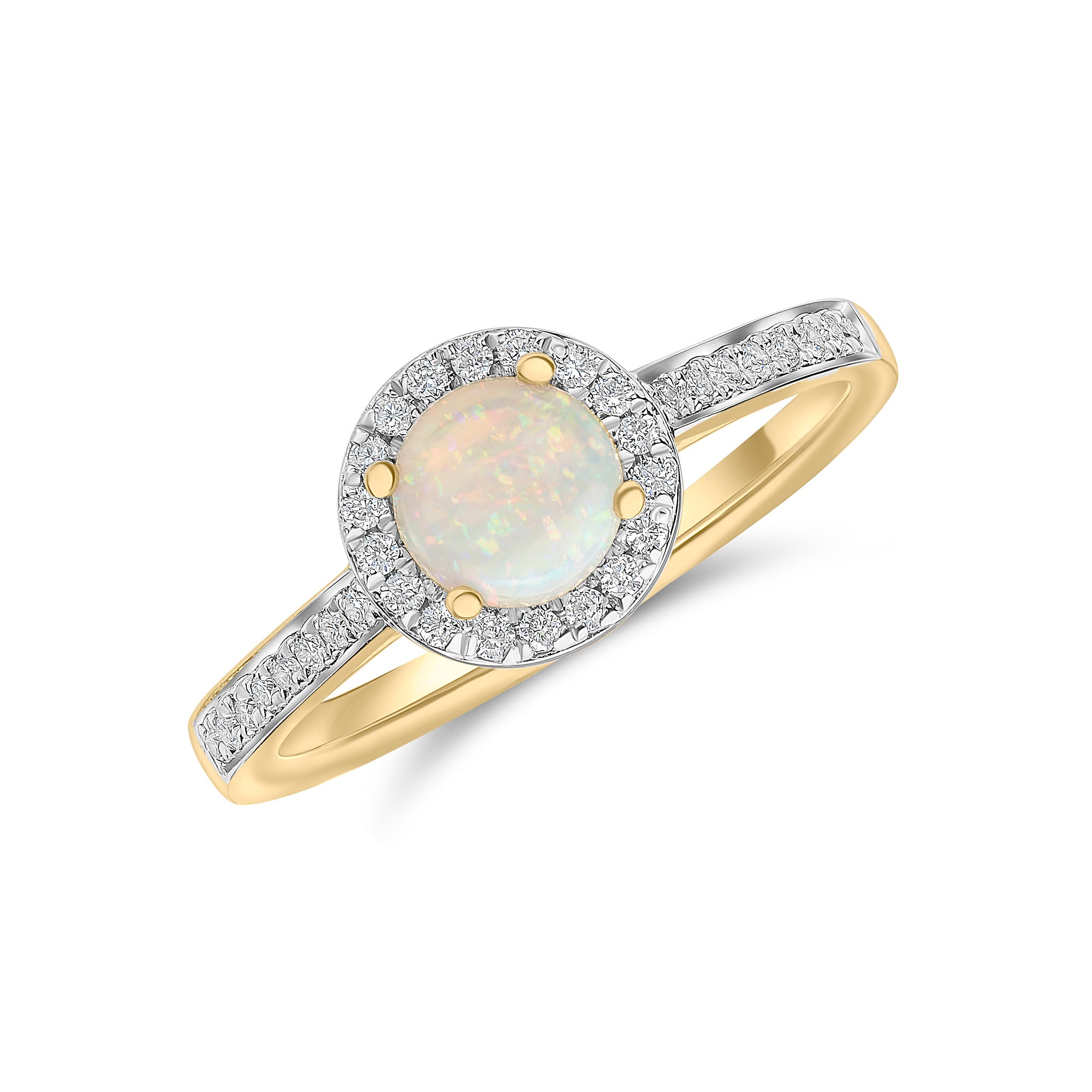 18CT Yellow Gold Claw Set Round Opal & Diamond Cluster Ring with Diamond Set Shoulders 5.5mm