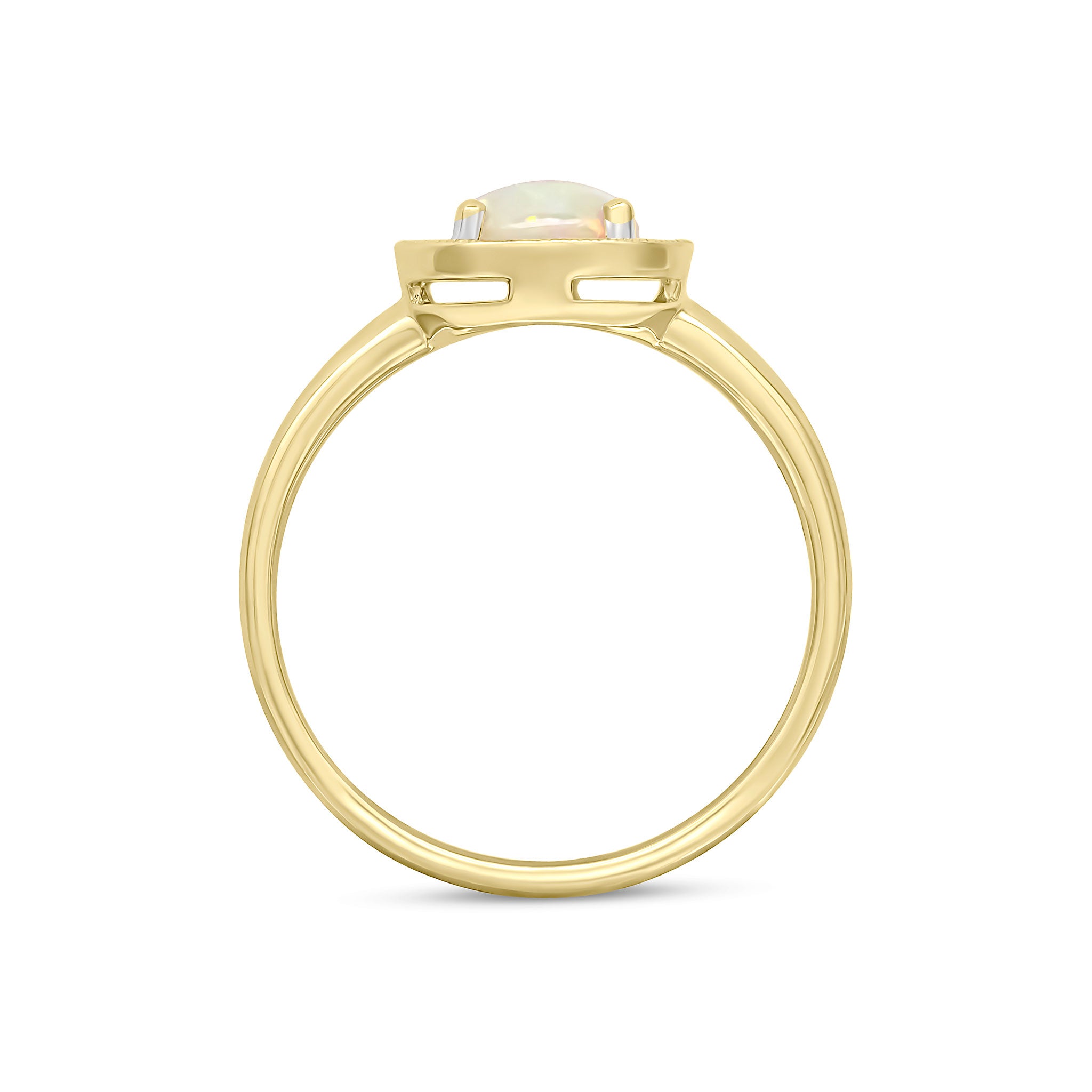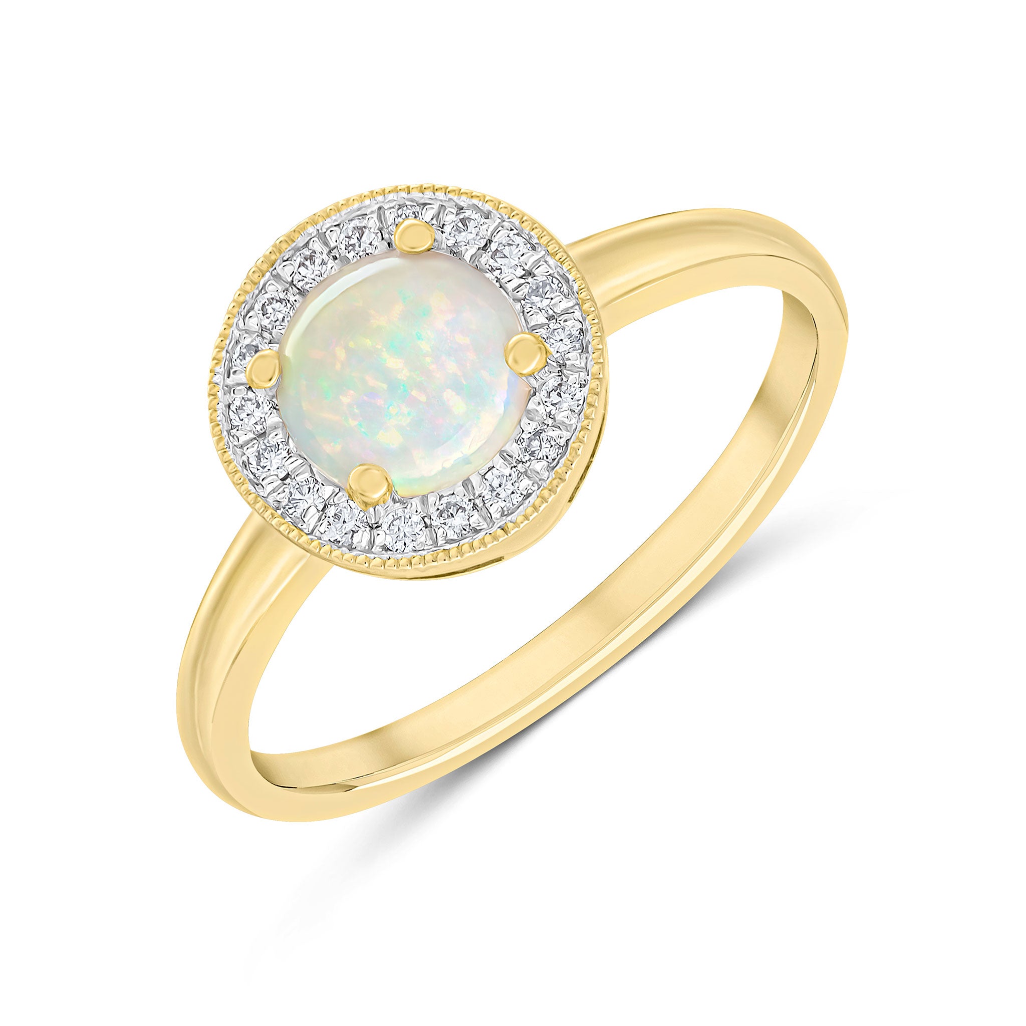 18CT Yellow Gold Claw Set Round Opal & Round Diamond Cluster Ring with Millegrain Edge 6mm