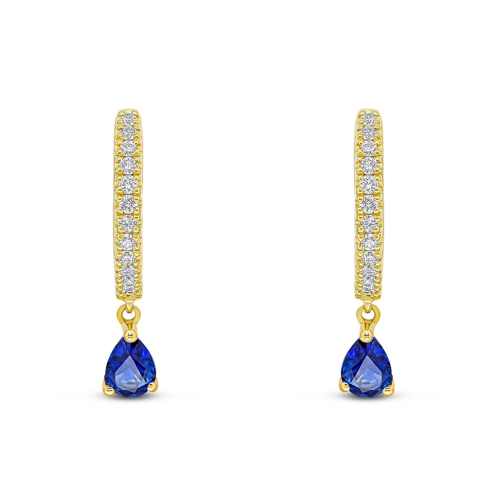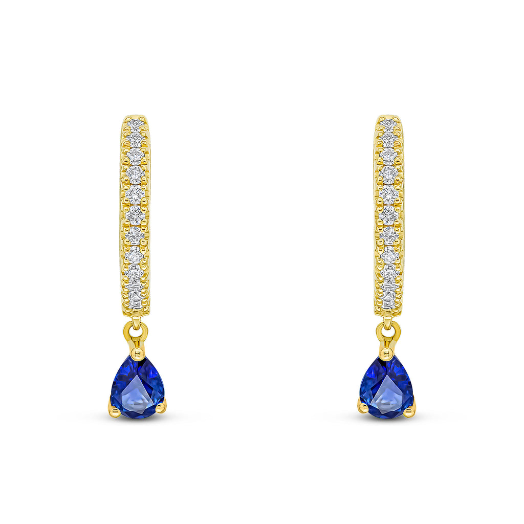 18CT Yellow Gold Diamond Hoop Earrings with Pear Shape Sapphire Drop