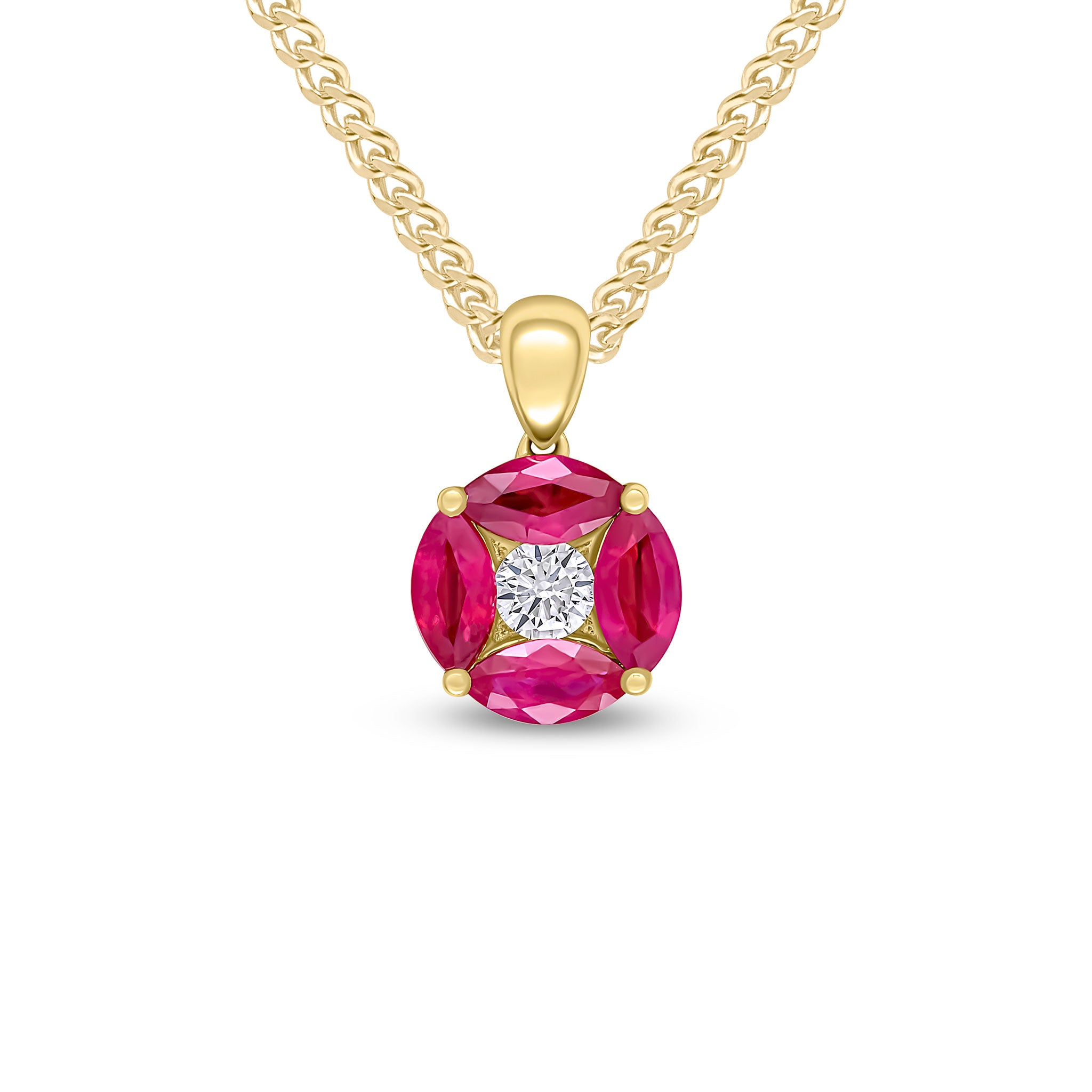 18CT Yellow Gold Marquise Ruby & Diamond Cluster Pendant 9mm