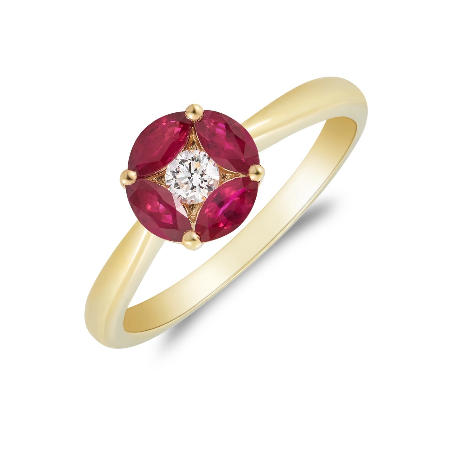 18CT Yellow Gold Marquise Ruby & Diamond Cluster Ring 8mm
