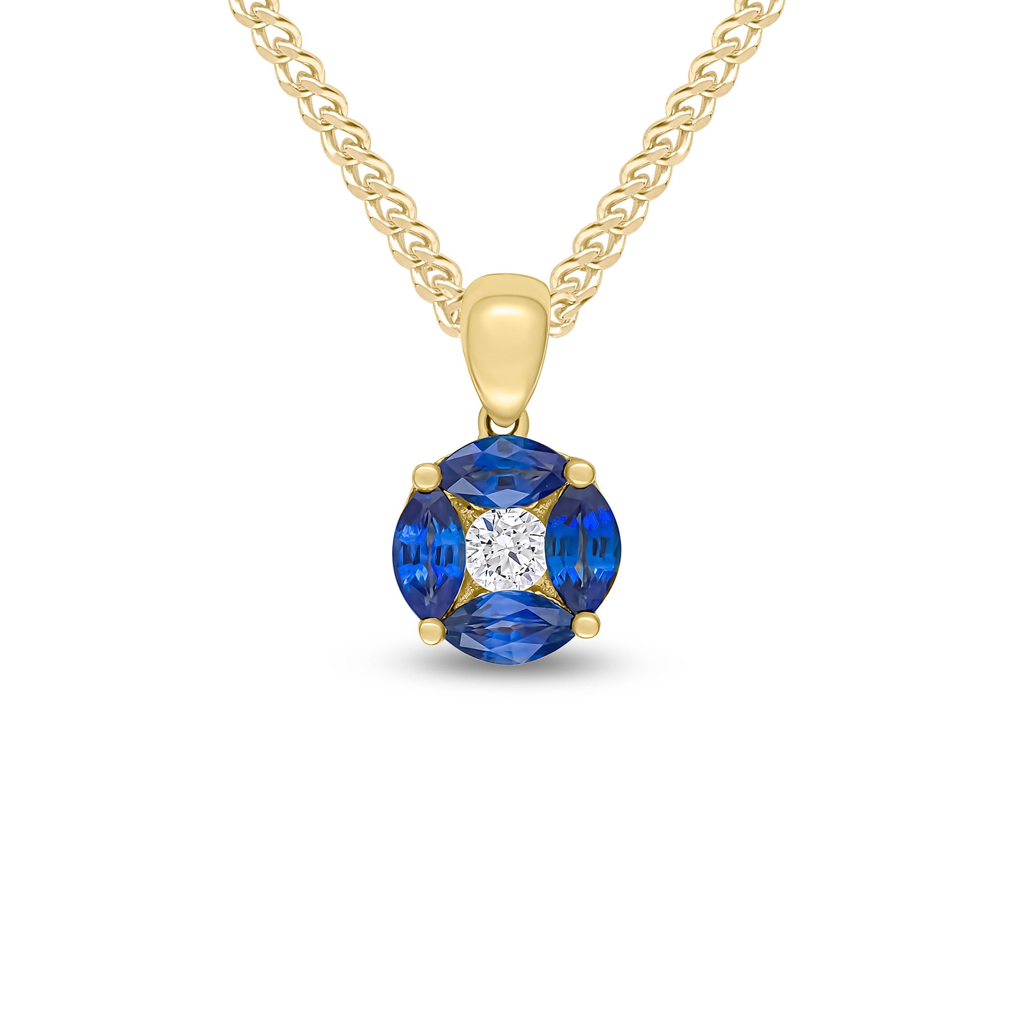 18CT Yellow Gold Marquise Sapphire & Diamond Cluster Pendant 8mm