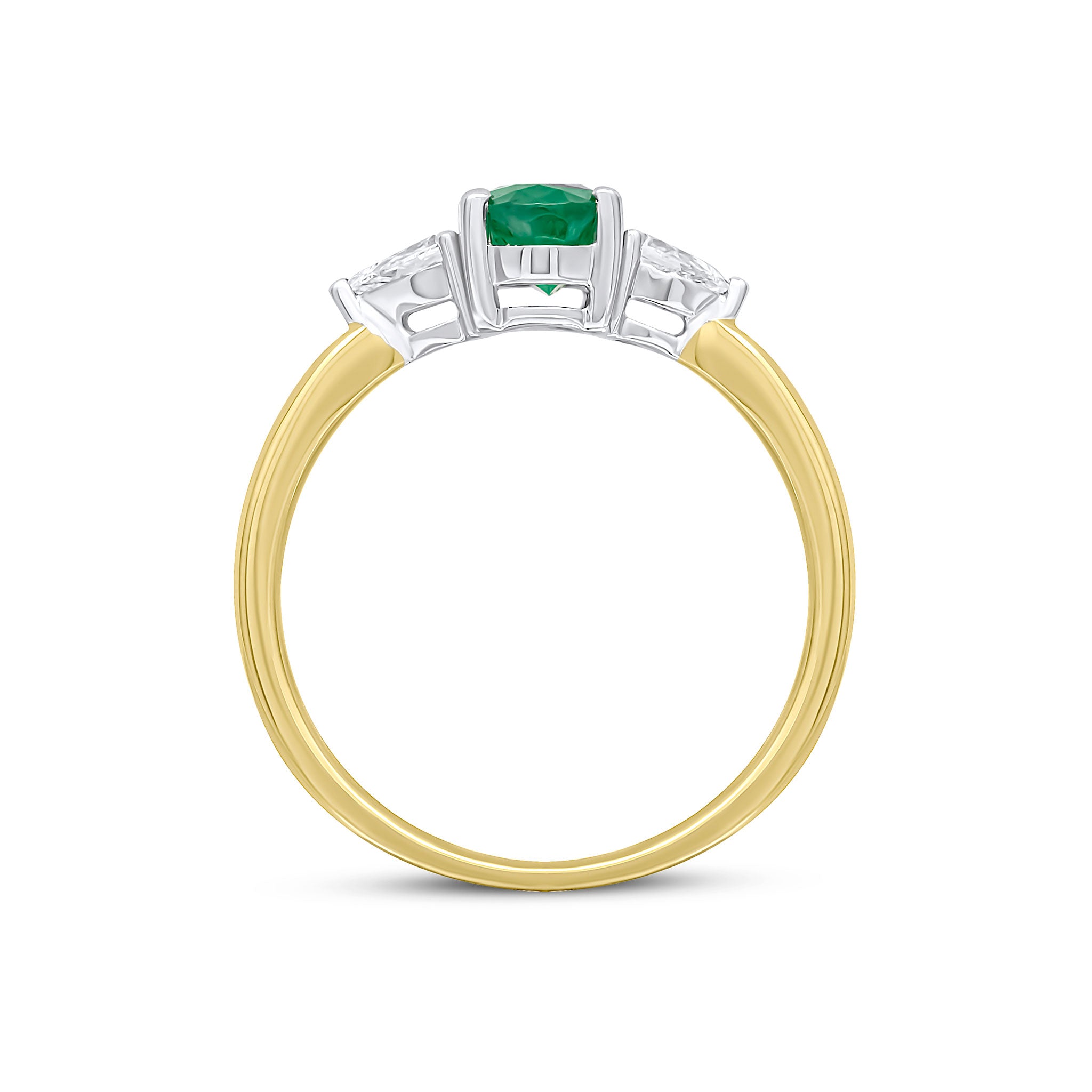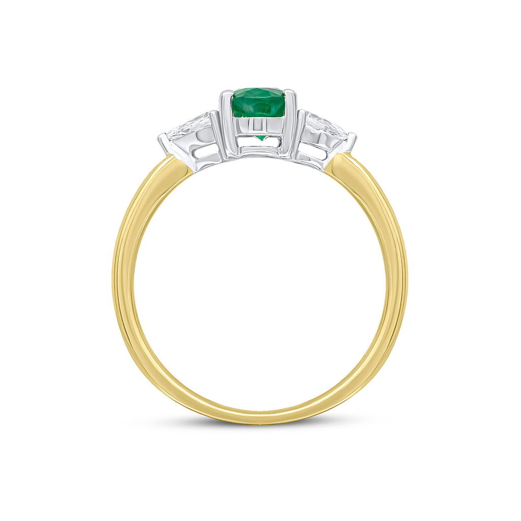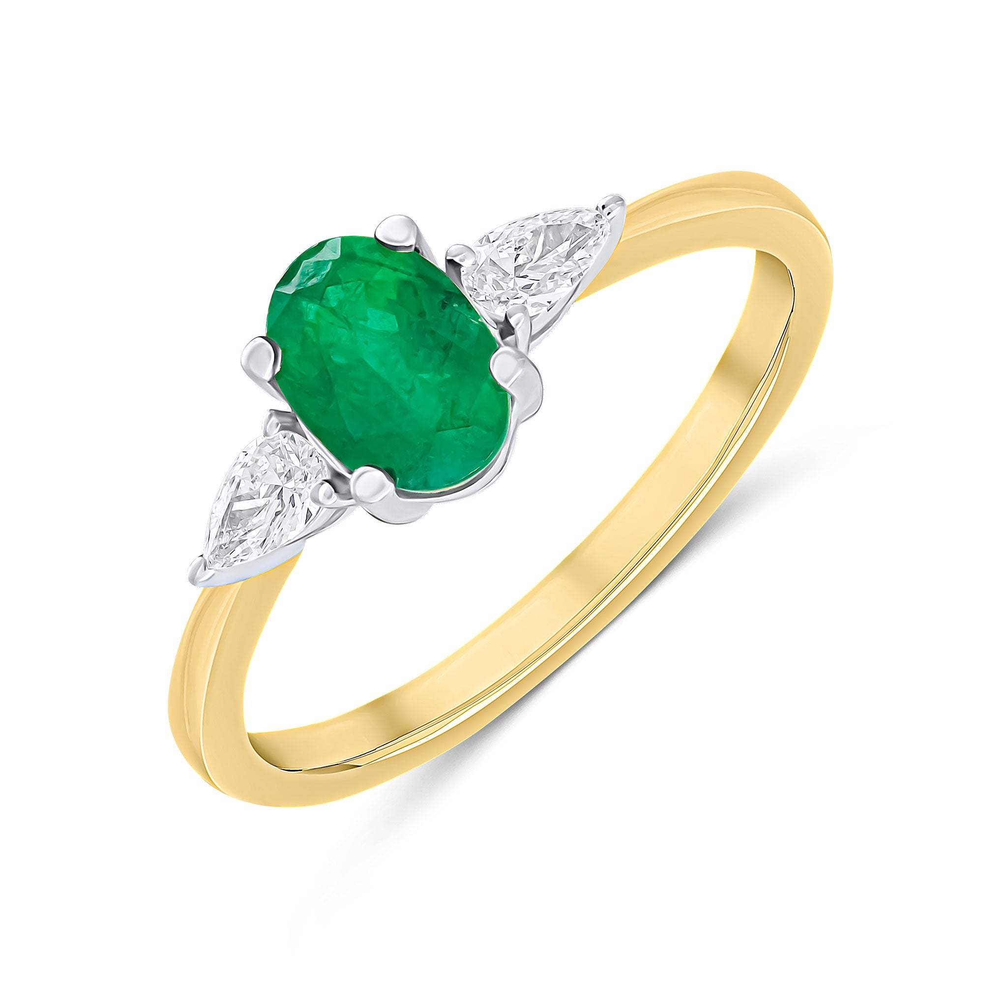 18CT Yellow & White Gold Oval Emerald & Pear Shaped Diamond Ring 7x5mm